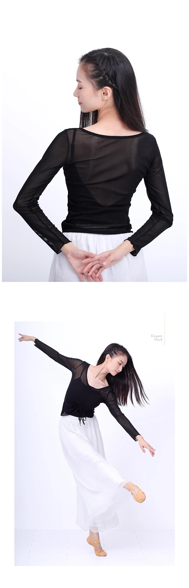 Балетные топы для взрослых, элегантный классический танцевальный сетчатый топ с длинным рукавом, Женская Одежда для танцев, тренировочный костюм