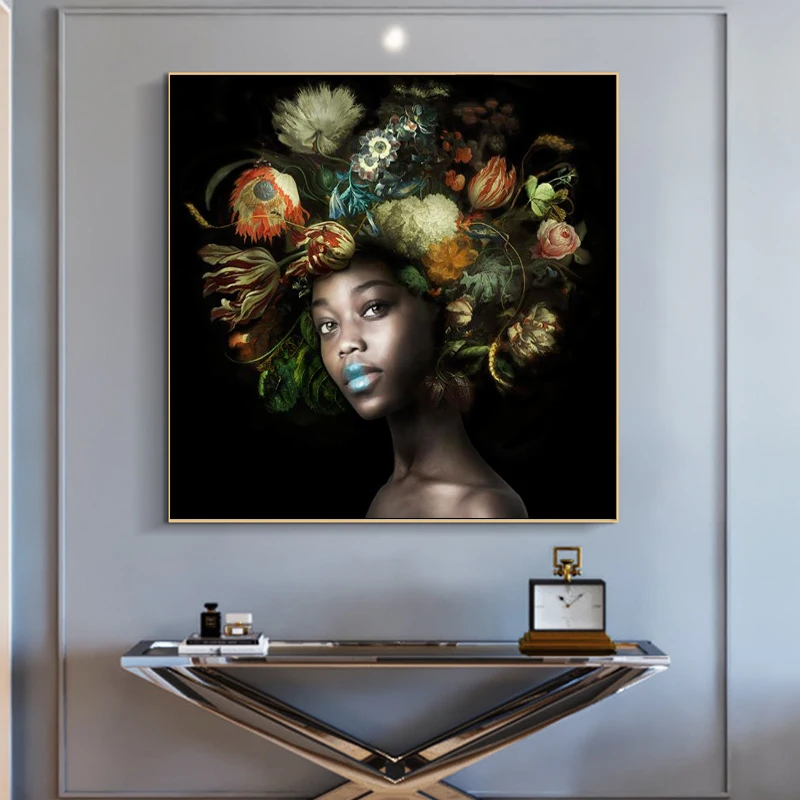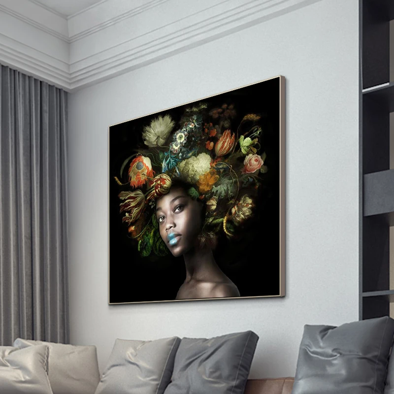 Картина маслом на холсте африканских женщин с цветами на голове, плакаты и принты, черная девушка, картина на стену для гостиной