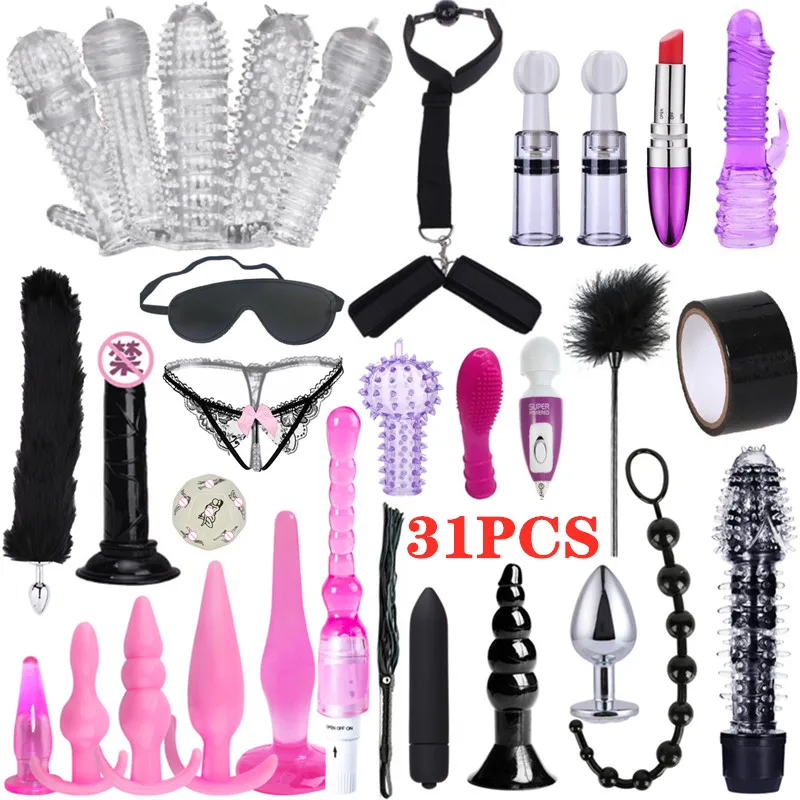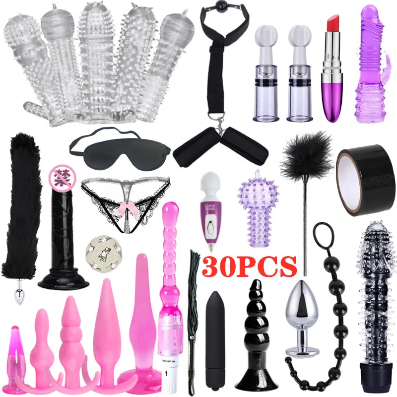 Наручники и зажимы для сосков, плетка для шлепков, Анальная пробка, вибратор, набор для взрослых, секс порно-игрушки