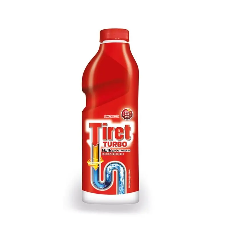 Применение: аккуратно вылейте 1/4 бутылки геля в отверстие канализационной трубы или прямо в воду. Оставьте на 5 минут. При сильных засорах оставьте на более продолжительное время. Смойте средство большим количеством горячей воды. 1 бутылка рассчитана на 2-4 применения. Для предотвращения засоров рекомендуется испольлзовать Tiret профилактик. Не предназначено для медных и резиновых труб, устранения засоров в туалете. Избегать попадания на поверхности с золотым или медным покрытием, старые или поврежденные.