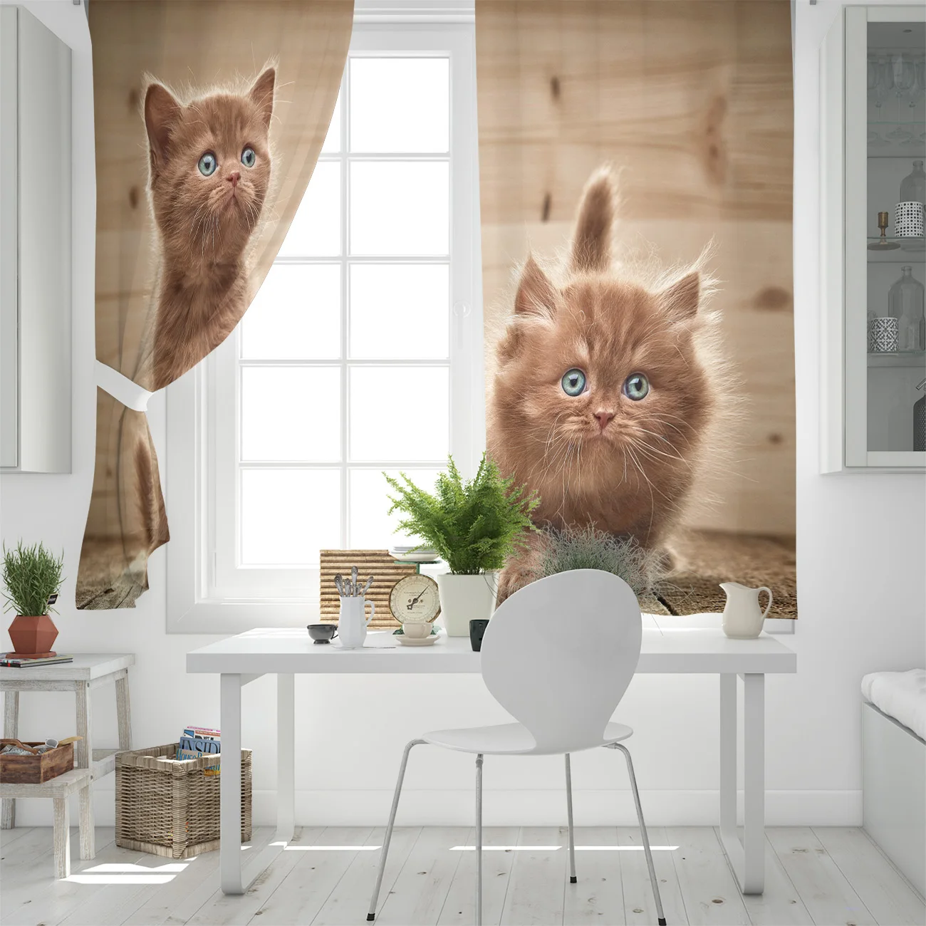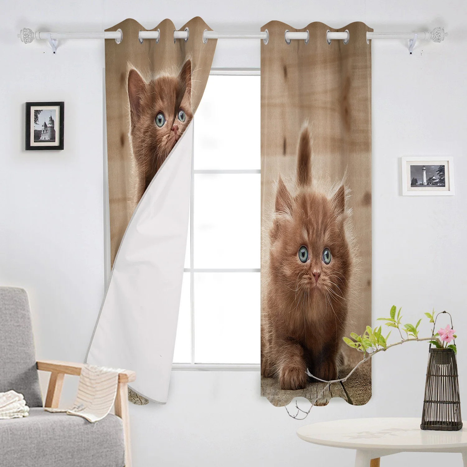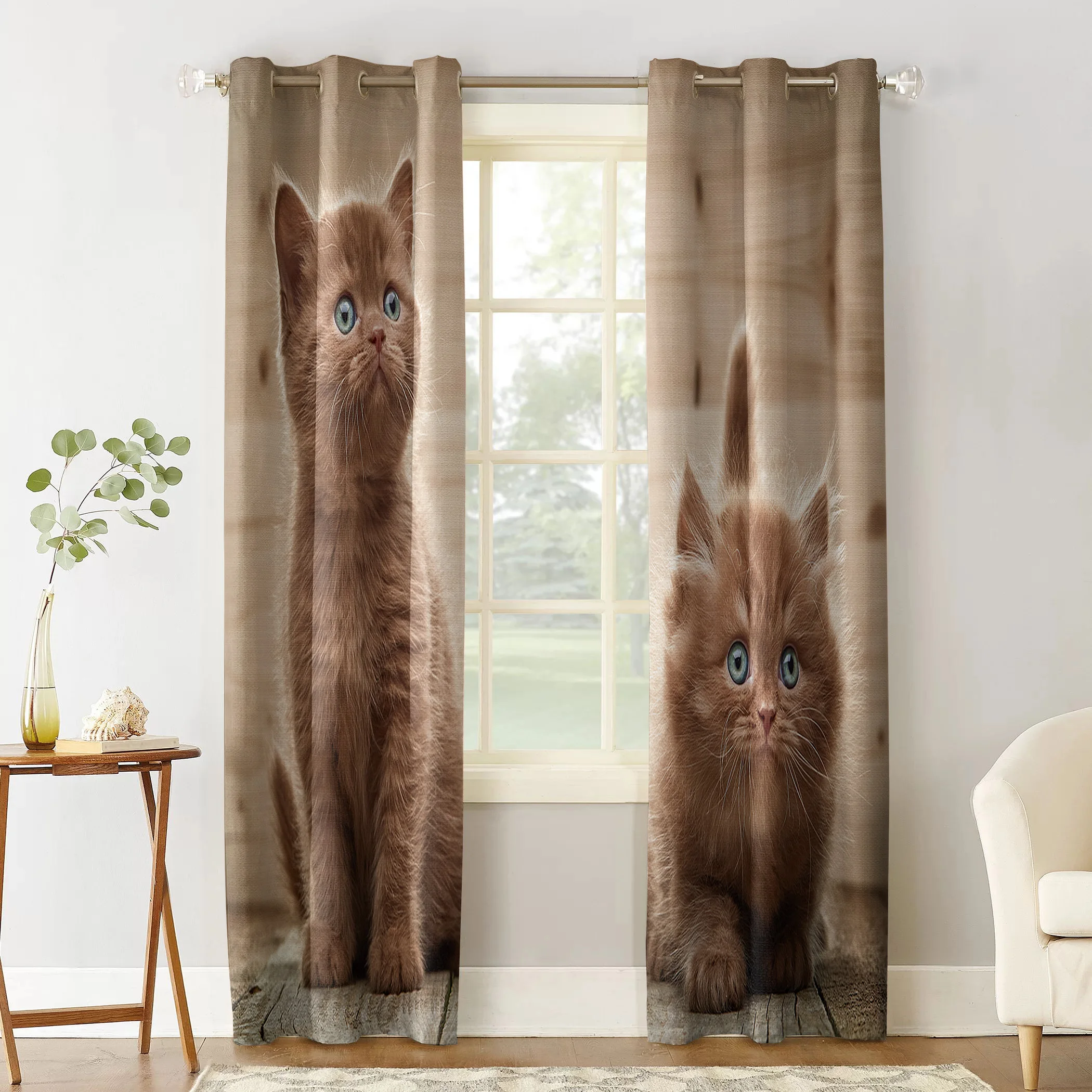 Симпатичные шторы с изображением коричневого кота, оконные шторы для гостиной, кухни, Современный домашний декор, драпировки для спальни