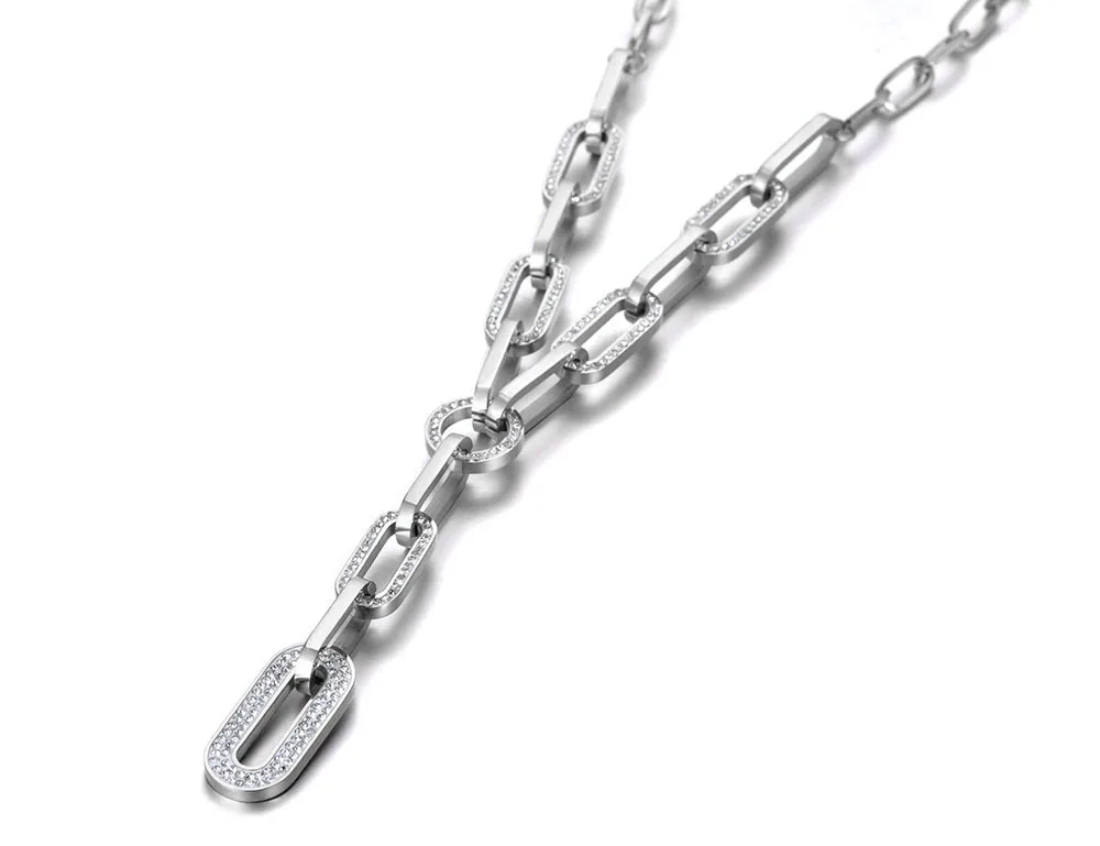 Ожерелье BOBOTUU в стиле хип-хопрок из нержавеющей стали с подвеской геометрической глины и кристаллами для женщин, модная цепочка и длинное ожерелье BN19163