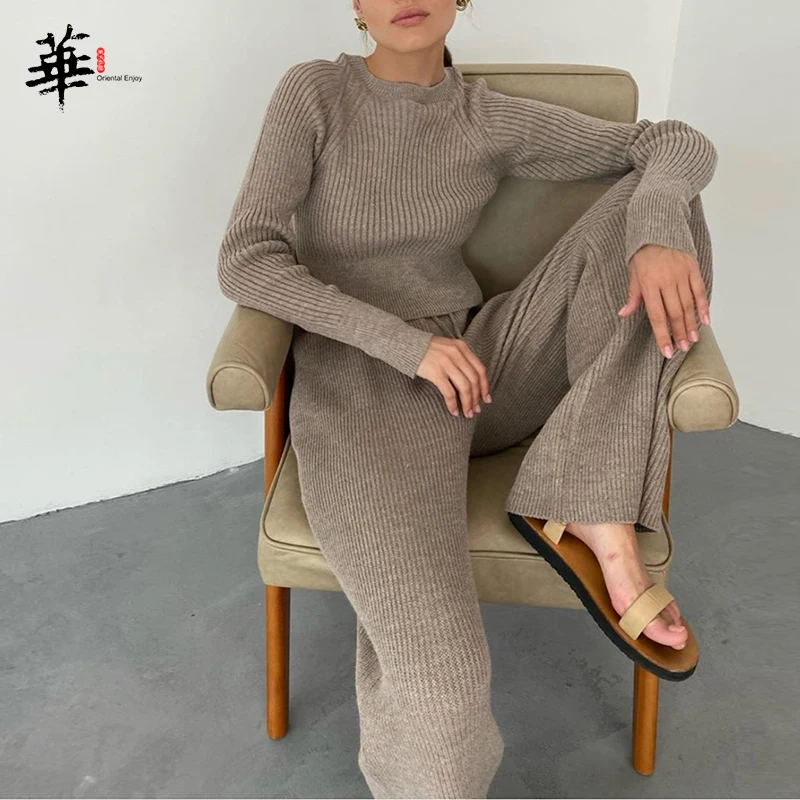 Женский однотонный костюм из двух предметов, пуловер, свитер и вяза...