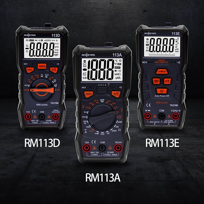 Цифровой мультиметр RICHMETERS 113A NCV, 6000 отсчетов, автоматический выбор диапазона, измеритель напряжения постоянного и переменного тока с фонариком, подсветильник и большим экраном