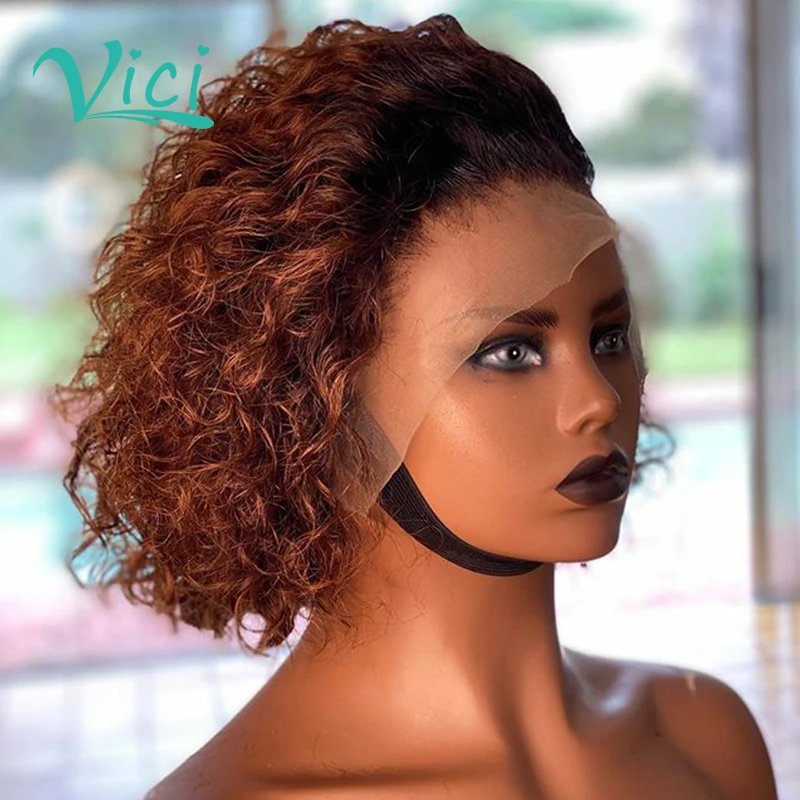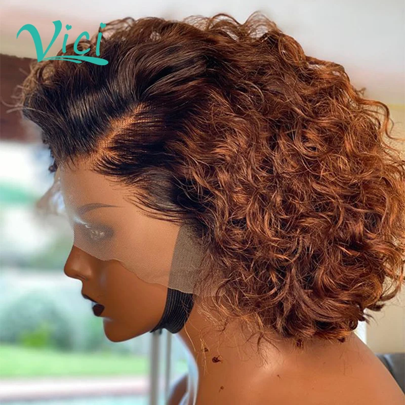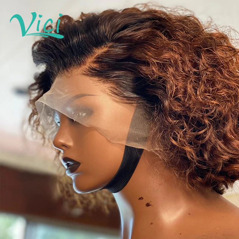 Медовый блонд, парики на шнурках для чернокожих женщин, парик для стрижки Пикси, человеческие волосы, Омбре, цветные, Боб, фронтальные парики, бразильские