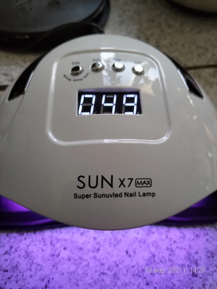 Заказала 31.01,пооучила 09.03.Продавец месяц не отправлял товар.Писала много раз,ответы не приходили.В последний день,продавец написал,что у них был праздник и они не работали всё это время.Наконец то отправил.Лампа как на картинке.30 секунд просушки мало,нужно как минимум минуту чтоб полигель просох.