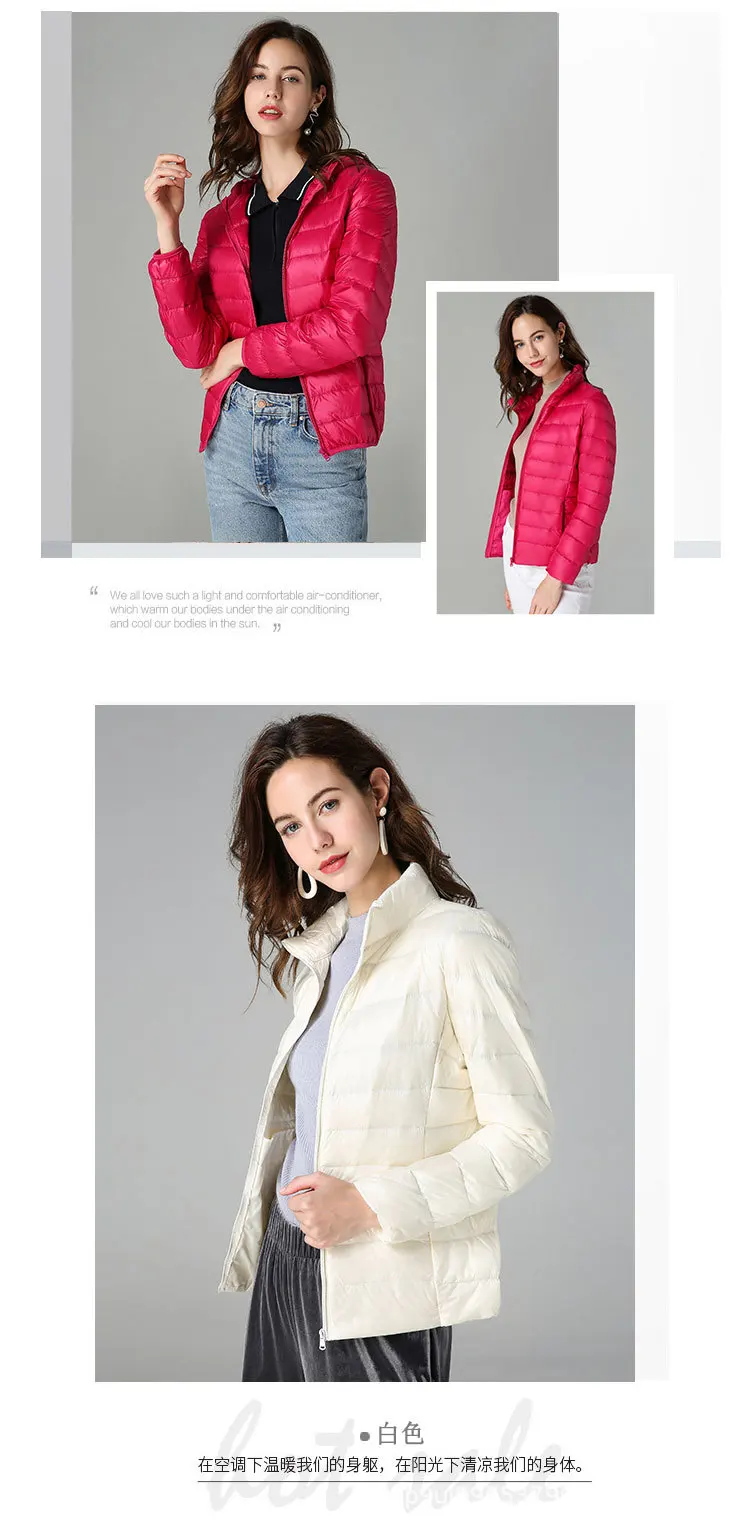 Зимняя женская Сверхлегкая тонкая пуховая куртка S-8XL, куртки с капюшоном из белого утиного пуха, зимнее теплое пальто, парка, Женская портативная верхняя одежда