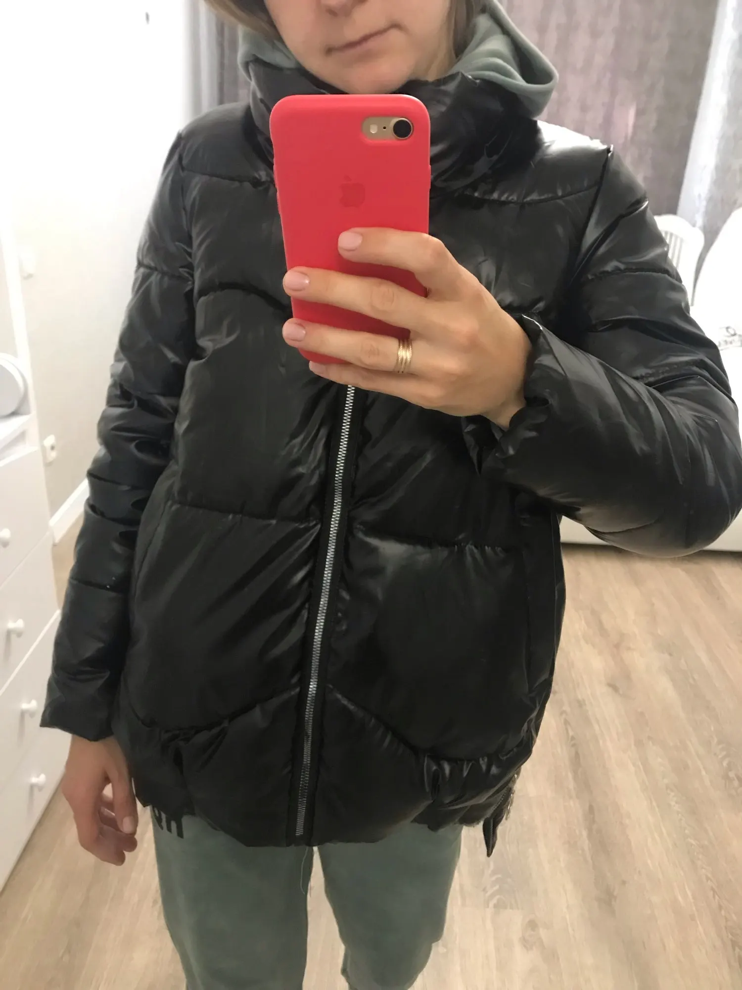 Куртка шла очень долго,но стоило ждать,цвет шикарный,пошив хороший,всё идиально Большое спасибо продавцу за отличный товар