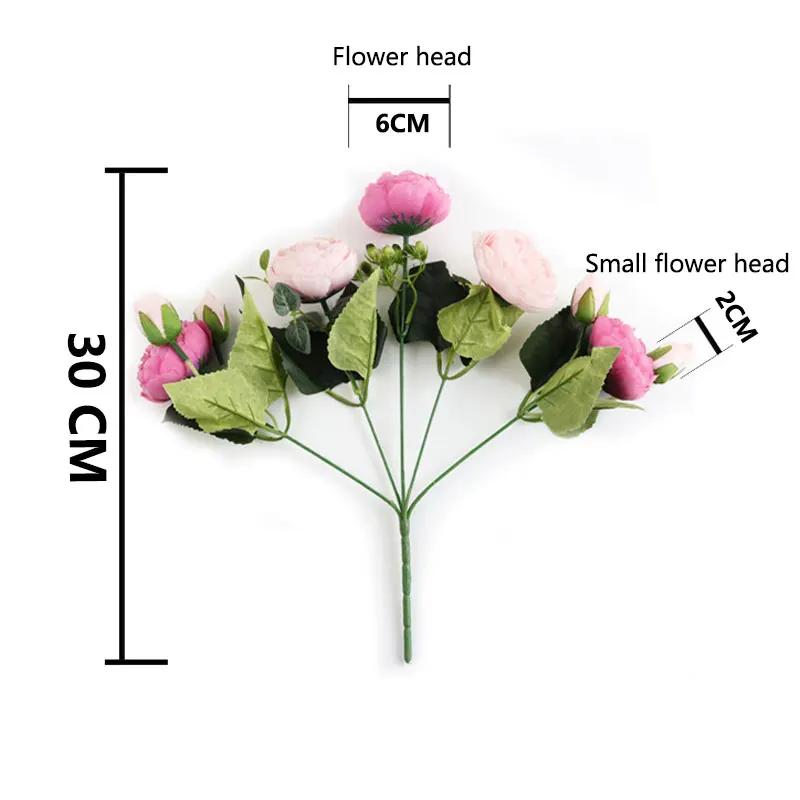 Искусственные цветы, 30 см, роза, розовый Шелковый Пион, букет с 5 ...