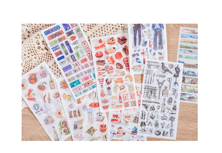 Наклейки для скрапбукинга, 3 листа в упаковке, наклейки из бумаги васи, стикеры для альбомов