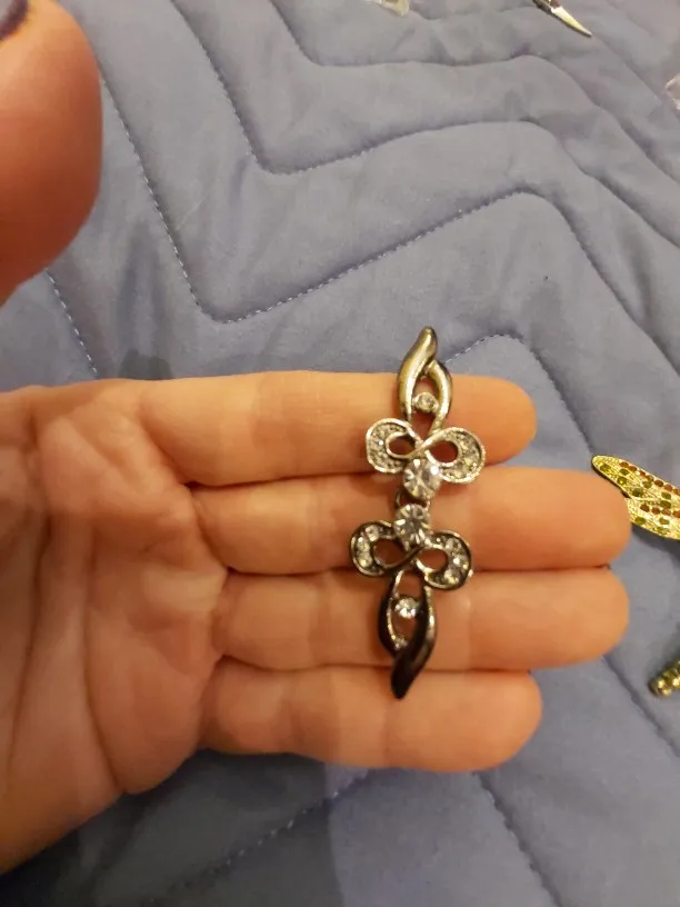 это совсем не заколка, не булавка, не брошь, хотя по описанию похоже. это деталь для шитья. в остальном очень красиво, никаких проблем