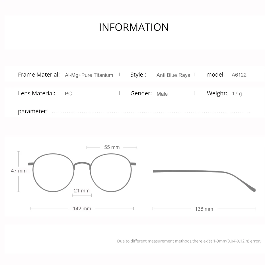 Очки мужские компьютерные из чистого титана с защитой от сисветильник и защитой UV400, A6122