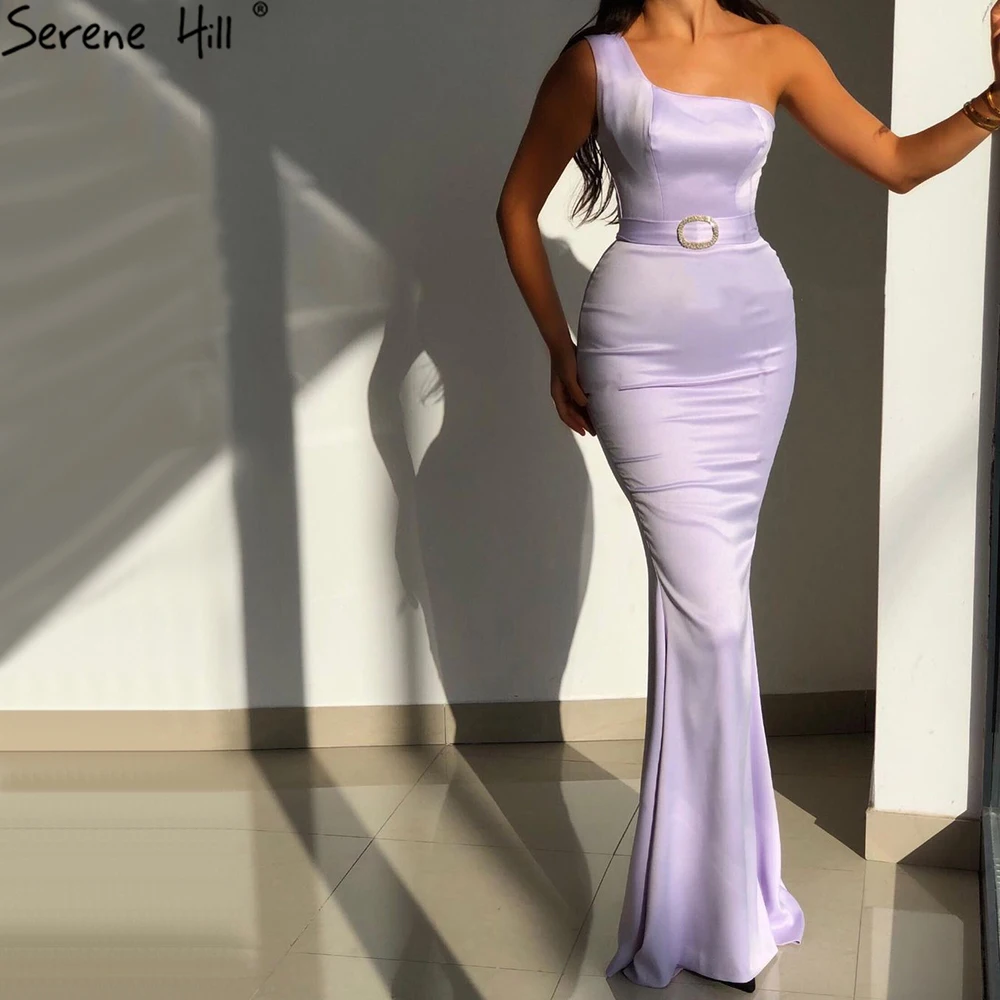 Серен Хилл сиреневый со съемным шлейфом простые Сексуальные вечерние платья 2021 Сатиновые женские вечерние платья на одно плечо LA70796