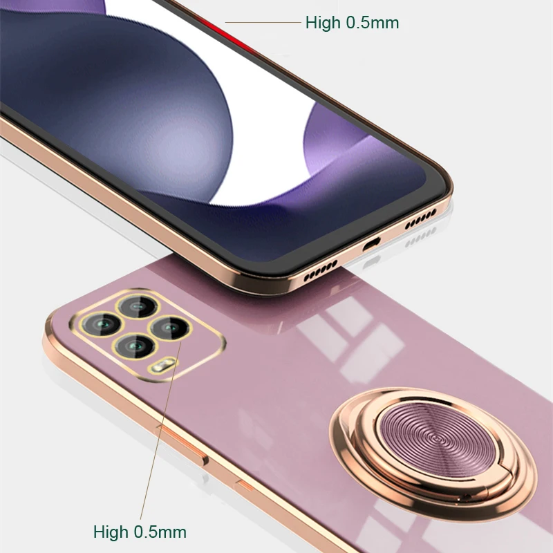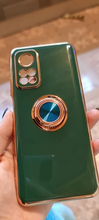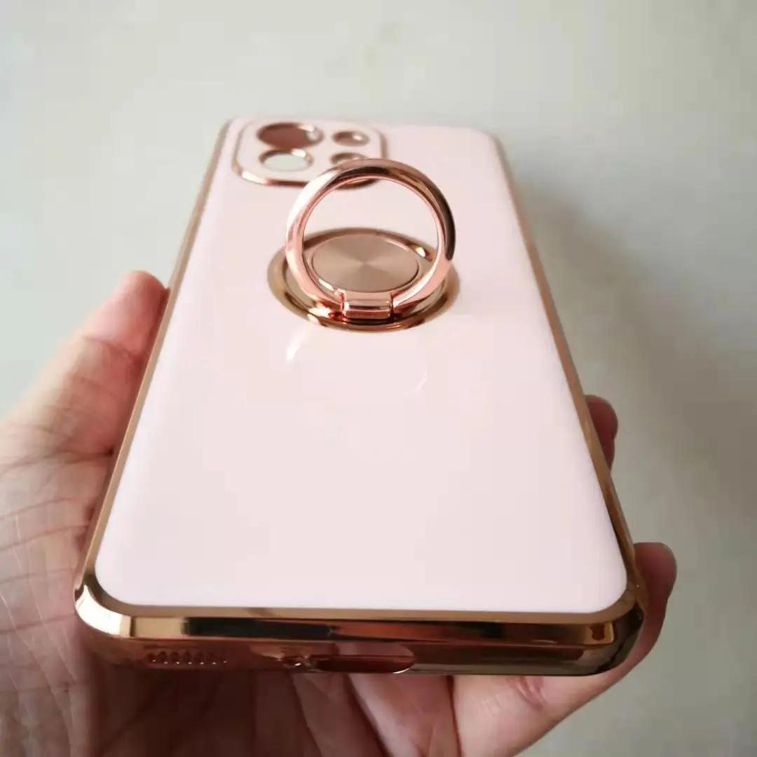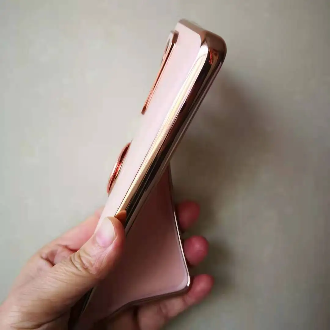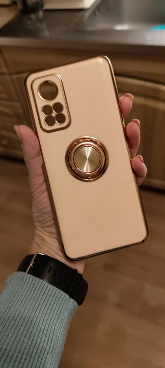 Отличный чехол. Закрывает бока экрана. Розовый, чуть персиковым цветом отдает .Кольцо цвет розового золота .