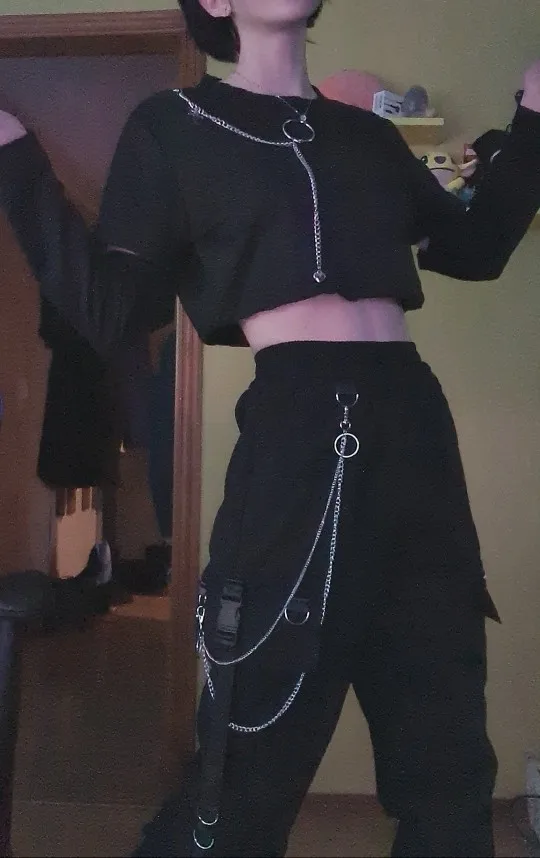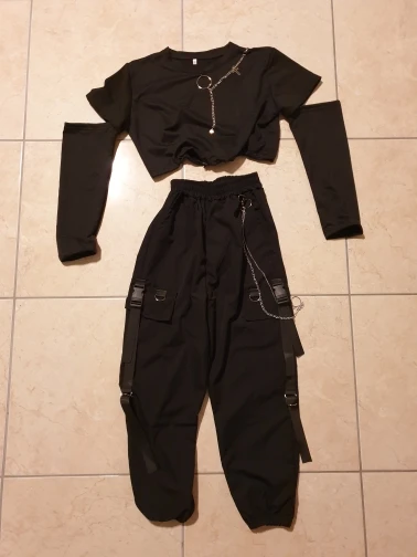 Очень крутой костюм! В комплекте вместе с ним идёт цепь на штаны, рукава дополнительные! Можно комбинировать как вы захотите! Футболка очень крутая, так как у неё есть резинка на талии, которую вы затягиваете как вам удобно! доставка до спб 2 недели! продавец помогал с выбором размера! Очень довольна костюмом! мой инстаграм где больше обзоров @yana.pvlva