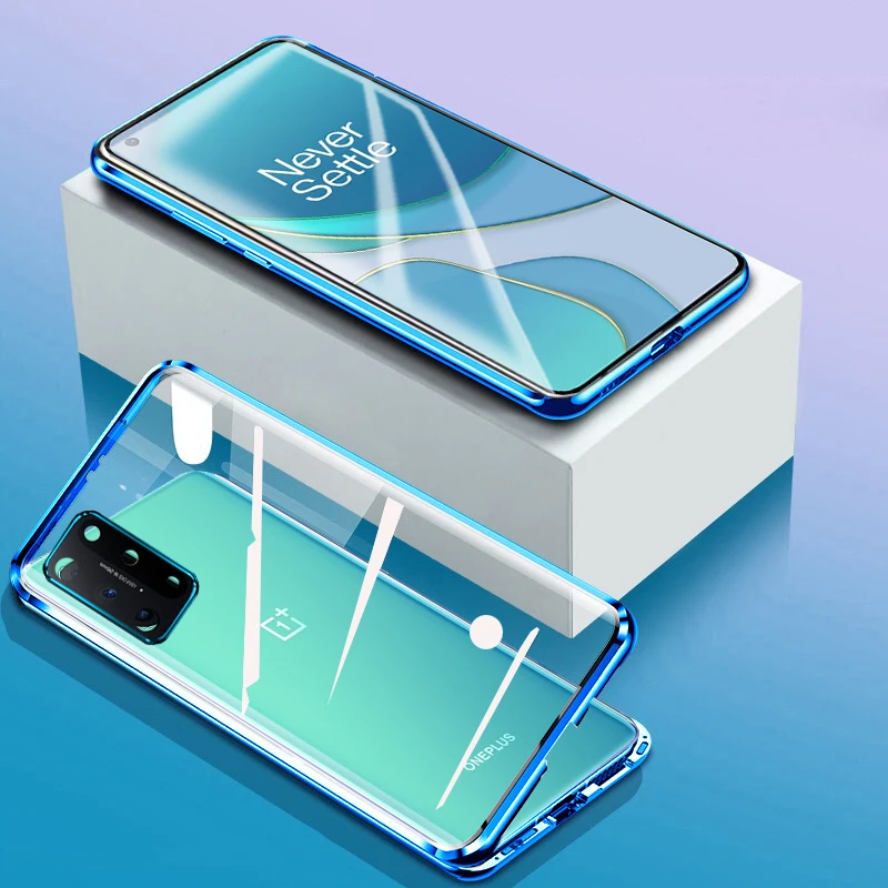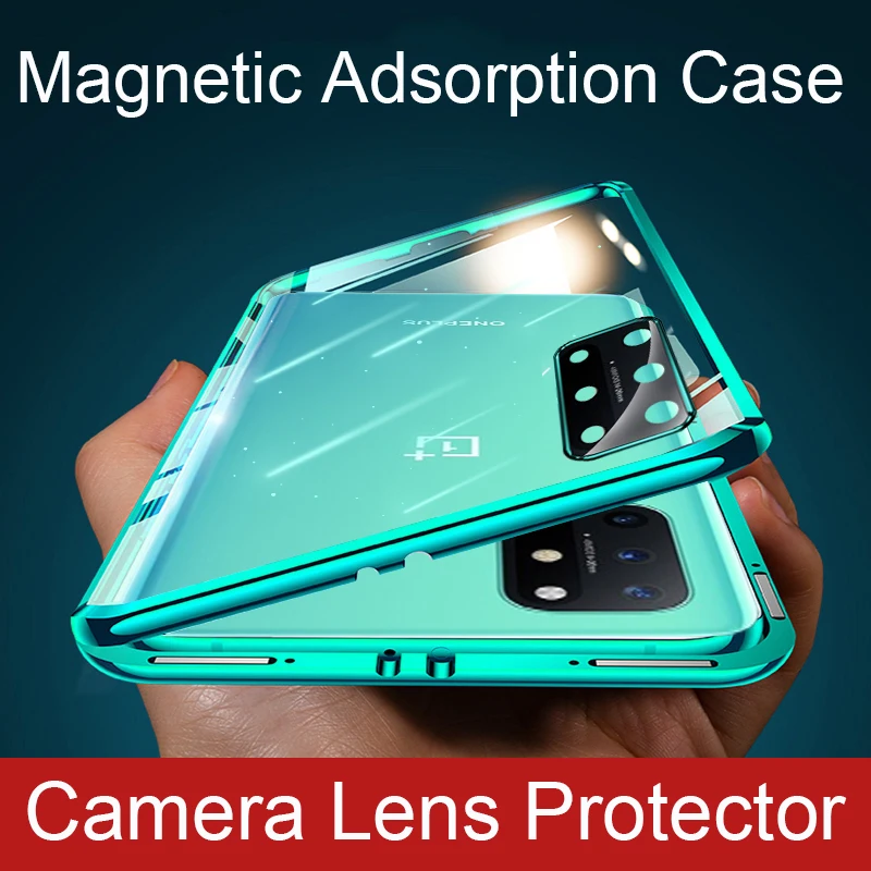 360 магнитный чехол для Oneplus 8T, Защитное стекло для объектива камеры, Алюминиевый металлический бампер, чехол для Oneplus 8 Pro Чехол Для Телефона