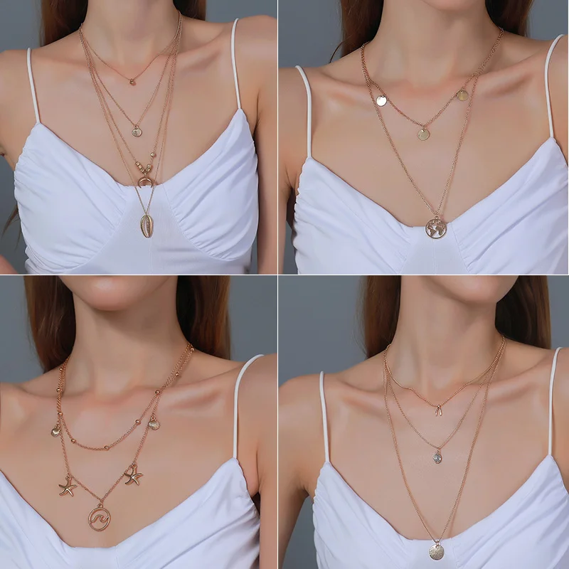 ZYZQ, богемный стиль, лидер продаж, ожерелье для женщин, ретро, многослойное ожерелье с подвеской в виде ракушки, креативная мода, ювелирные изделия для коктейвечерние