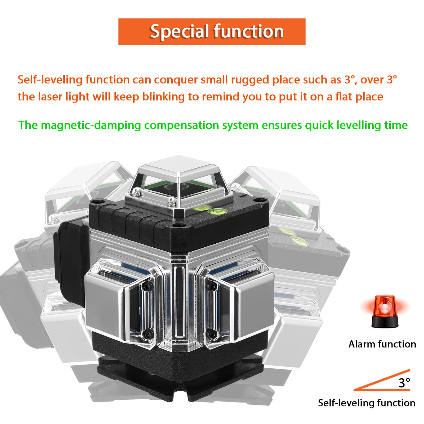Самонивелирующийся 4D лазерный уровень, 16 линий, 360 , инструмент, настенная наклейка с вертикальными, горизонтальными и косыми линиями