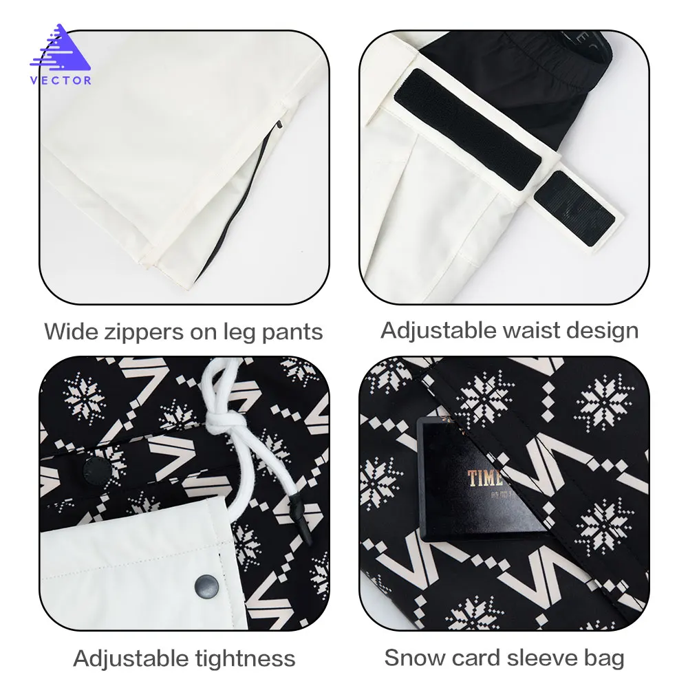 Мужские и женские лыжные штаны VECTOR, куртка, Двусторонняя куртка, зимняя теплая ветрозащитная Водонепроницаемая спортивная куртка для улицы, сноуборда, лыж