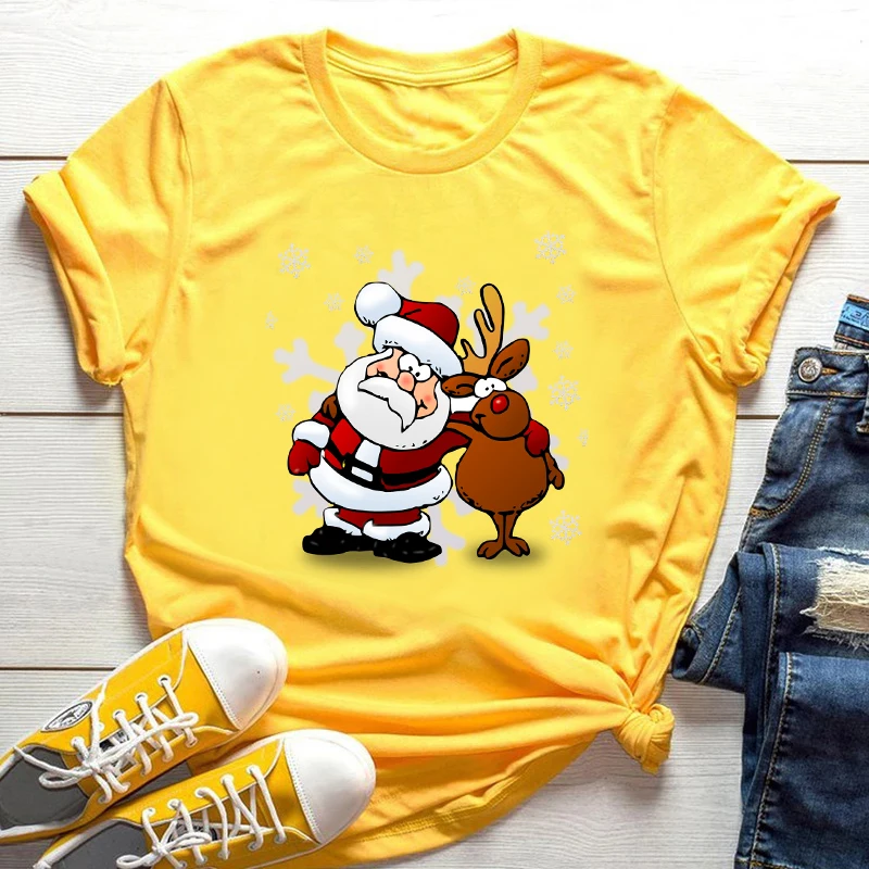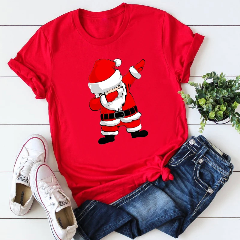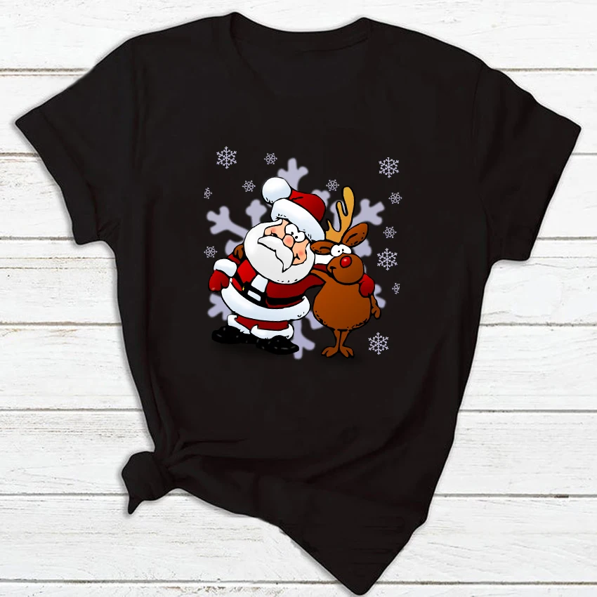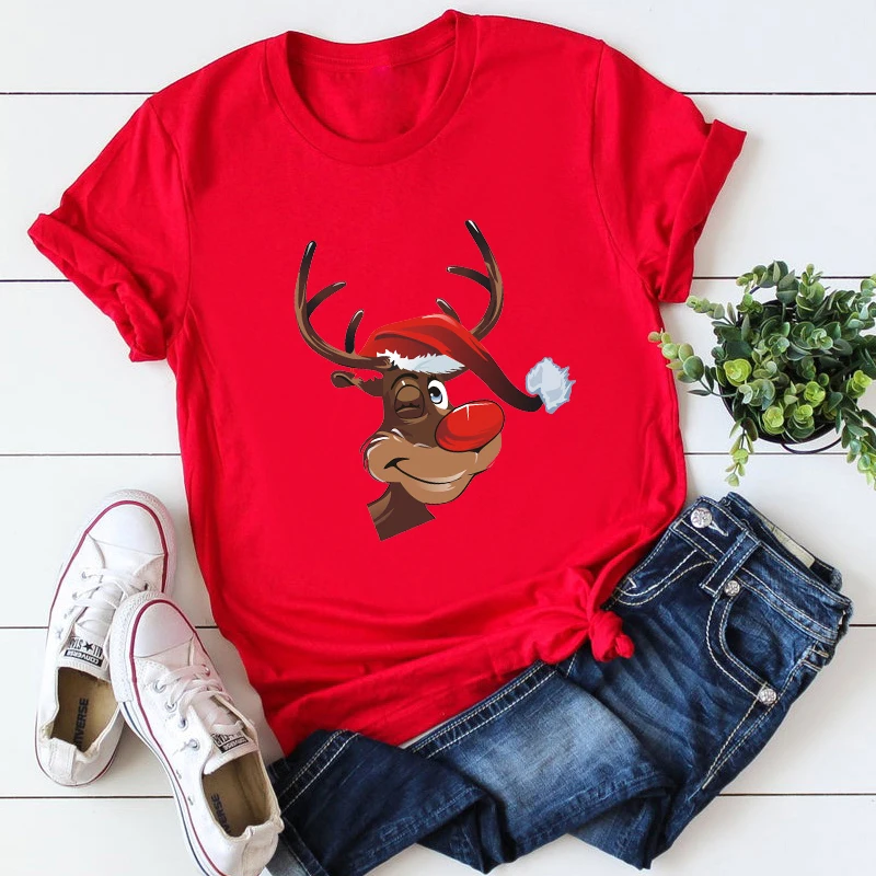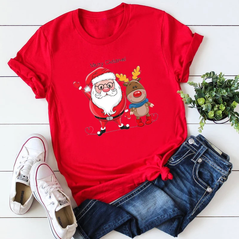 Женские Модные цветные футболки с коротким рукавом и графическим принтом Санта и олень, Рождественская Красная футболка с рисунком, топы унисекс
