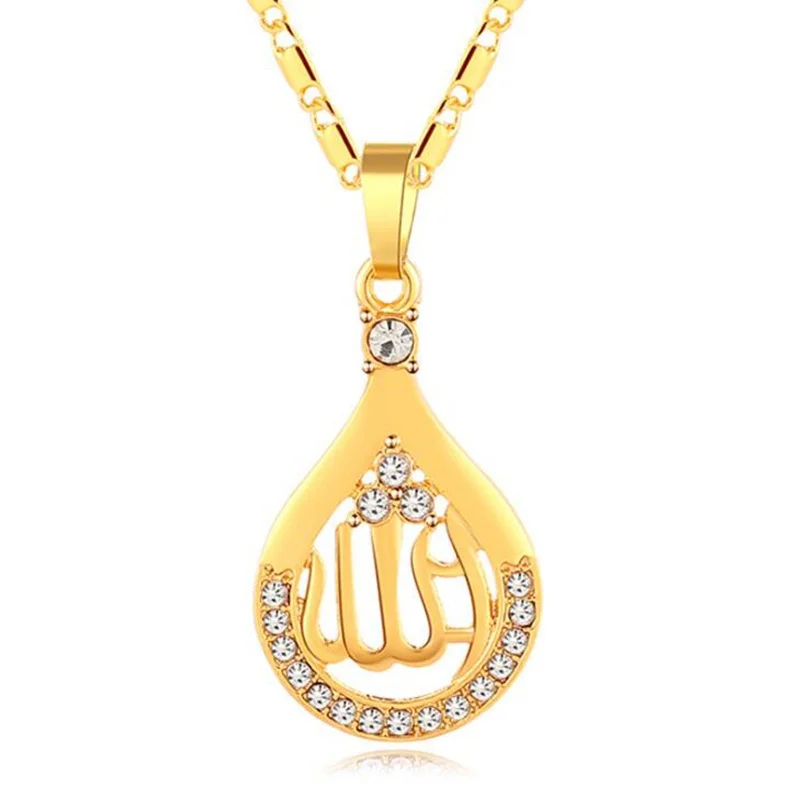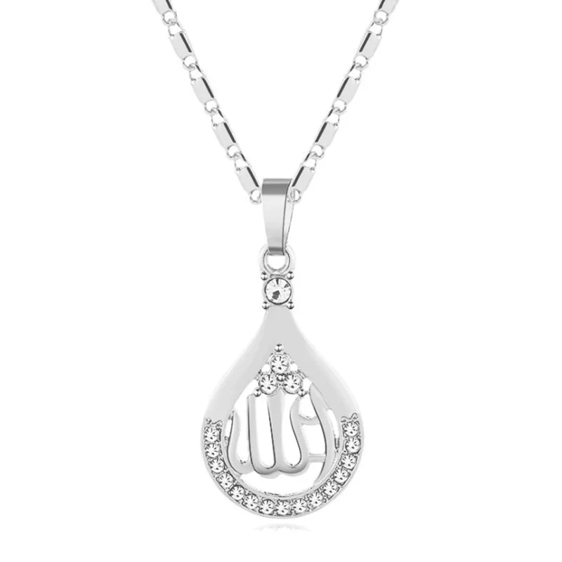 Мусульманский Исламский Аллах Украшенные цирконием капли воды в форме ожерелье с подвеской унисекс религиозный стиль ювелирные изделия аксессуары