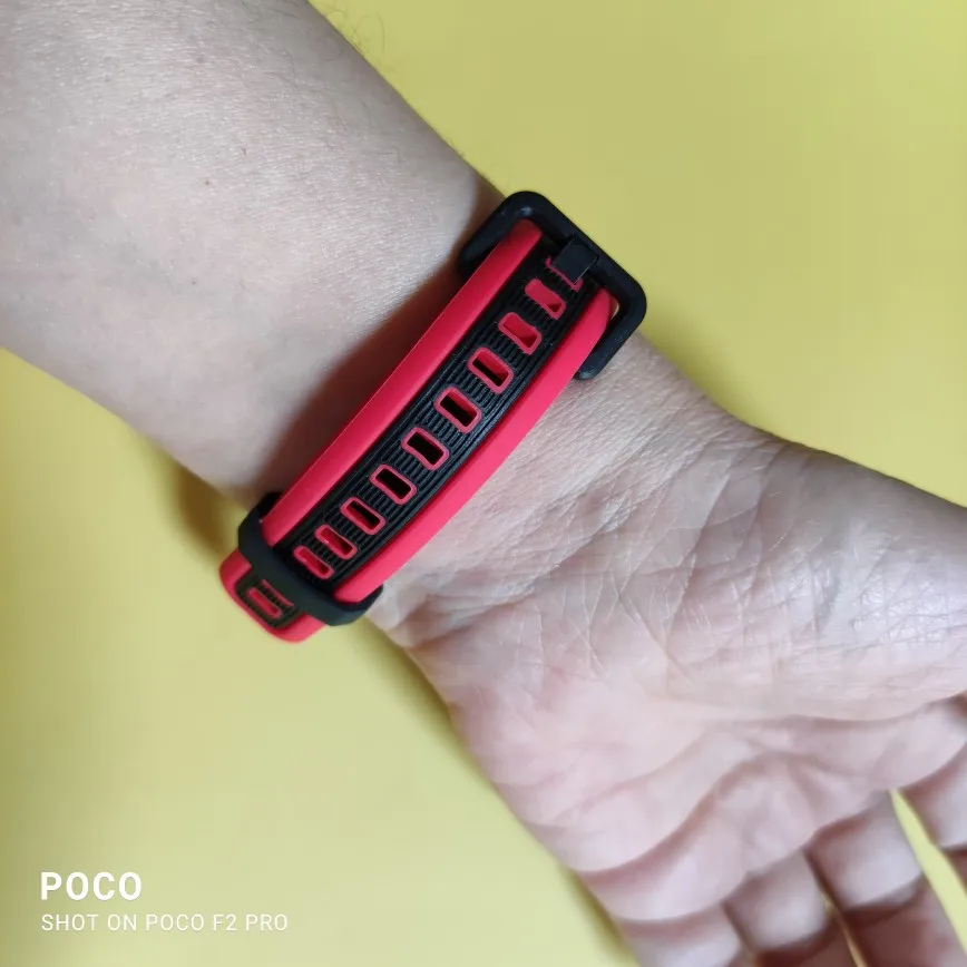 Ремешок удобный, но выглядит неказисто. На руке сидит хорошо, нет неприятных ощущений. Жалко, что застежка не металлическая, не знаю, как долго прослужит.
