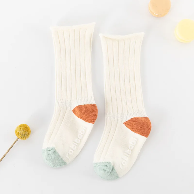 Детские хлопковые гольфы, носки для малышей с двойными иглами и полосками в стиле пэчворк, нескользящие носки для детей, длинные носки для мальчиков и девочек, детские носки