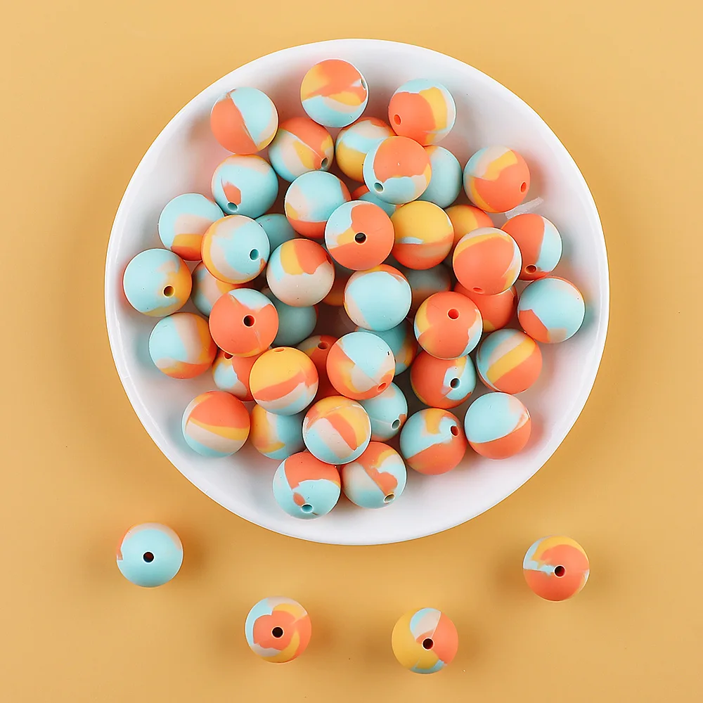 TYRY.HU 50 шт./лот пищевые силиконовые бусины терраццо и Леопардовый принт бусины для прорезывания зубов Детские Жевательные бусины для прорезывания зубов DIY 12/15 мм
