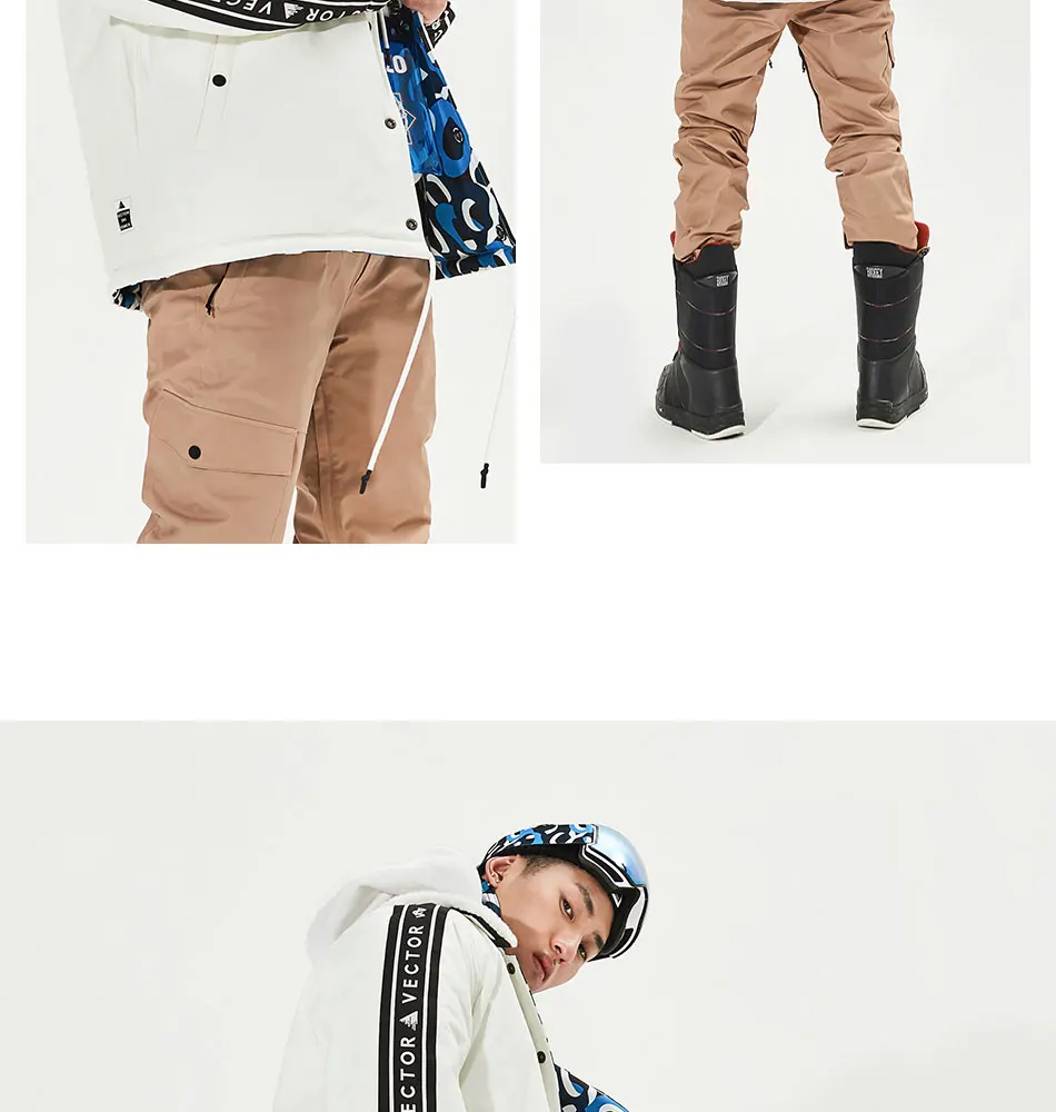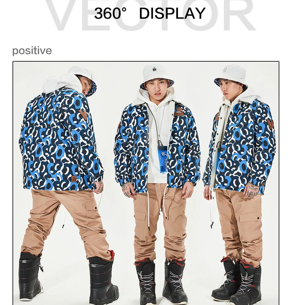 Векторные мужские и женские лыжные брюки куртка Двусторонняя зимняя теплая ветрозащитная Водонепроницаемая спортивная куртка для катания на лыжах