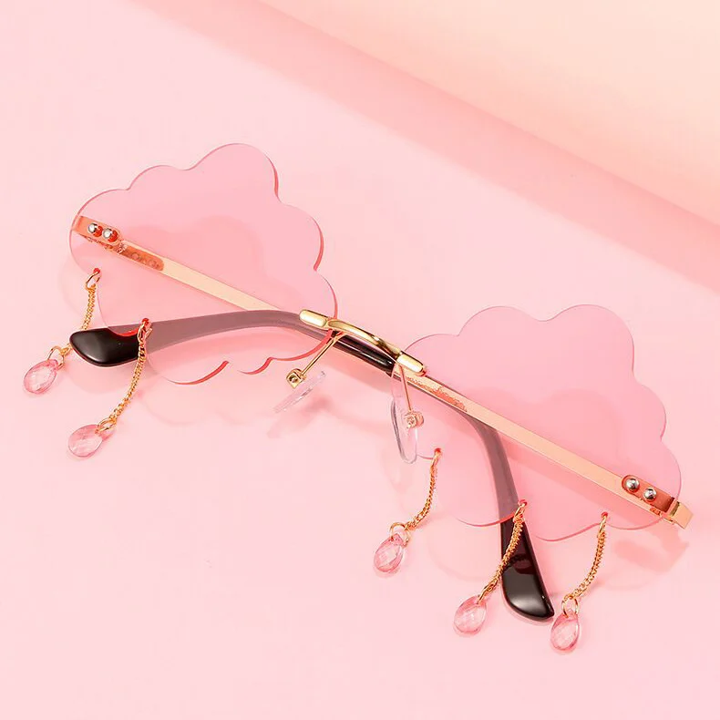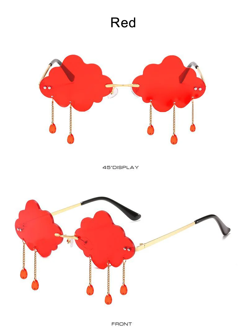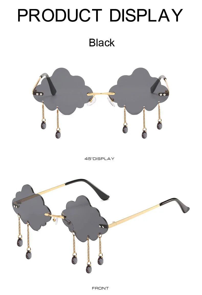 Модные солнцезащитные очки без оправы для мужчин и женщин, модные солнцезащитные очки с облаками, женские и мужские винтажные металлические солнцезащитные очки с кисточками и каплями дождя