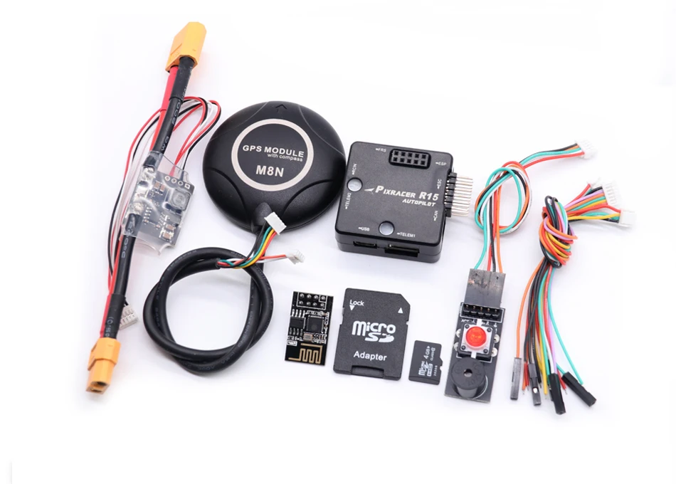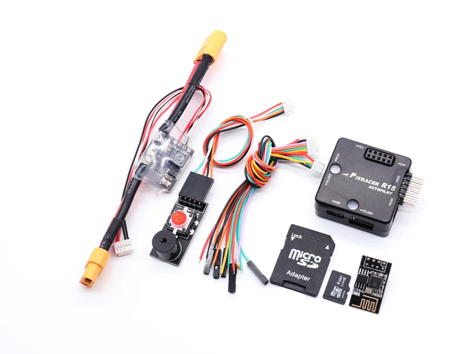 Стандартный комплект R15 комплектация:Полетный контроллер Pixracer R15 x 1Пластиковый корпус x 1Предохранительный переключатель и зуммер x 1МикроКарта tf 4G x 1