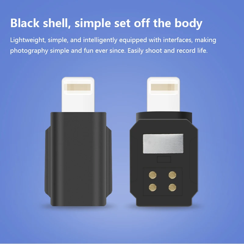 Характеристика:1. Предоставляем 4 вида разъемов на мобильный телефон, подходящих для Apple, Android standard, Android reverse и type-c,2. Черный корпус, простая машина для подкладки, светильник, простой, интеллектуальный интерфейс, легко снимать и записывать жизнь,3. Функция расширения интерфейса, подключение к большинству мобильных телефонов, откройте больше способов воспроизведения,4. Корпус изготовлен из АБС-пластика, который обладает ударопрочностью, термостойкостью и низкой термостойкостью и может защитить внутреннюю цепь.Описание:Материал: пластик, алюминиевый сплавПодходящие модели: для кармана 2Цвет: черныйВес нетто: 1,6 г (одинарный), 4,2 г (4 шт.)Размер продукта: 2,5*1,3*0,5 см (однометный)Упаковочный лист: адаптер * 1Примечание: Не включает камеры PTZ, мобильные телефоны и другие аксессуары.