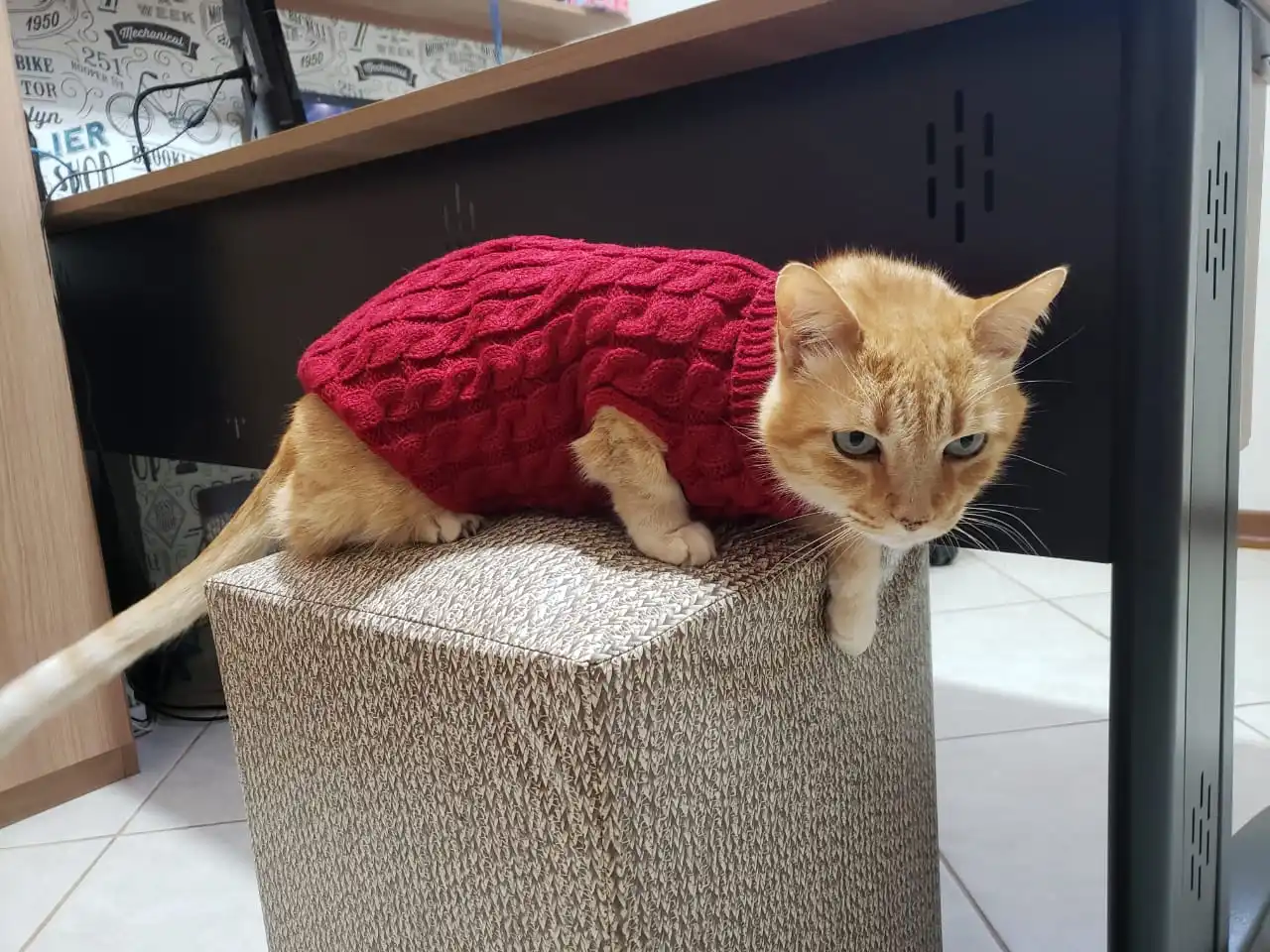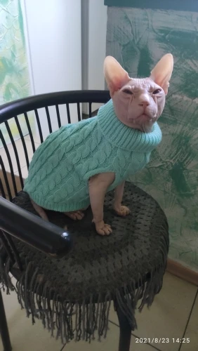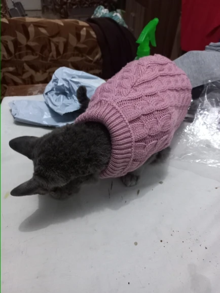 Доставка была очень долгой, но оно того стоило. Маленький свитер очень хорошо сочетается с кошкой, это правильный размер, он будет очень теплым для следующей зимы. Я рекомендую этого продавца