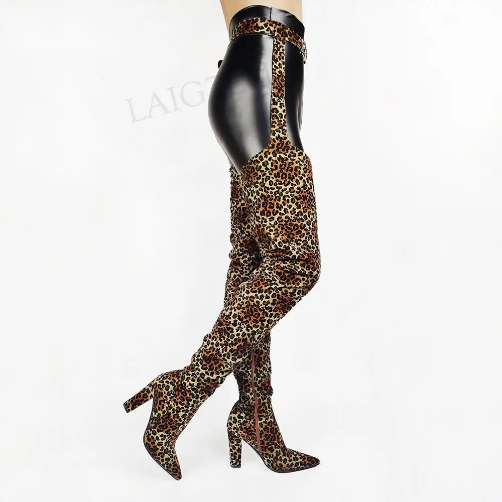 LAIGZEM Для женщин высотой до бедра, сапоги из PU искусственной замши, боковая застежка-молния на сужающемся книзу каблуке; Пояс на талии; Обувь для вечеринок; Женские Размеры 39-42 45, 46, 47