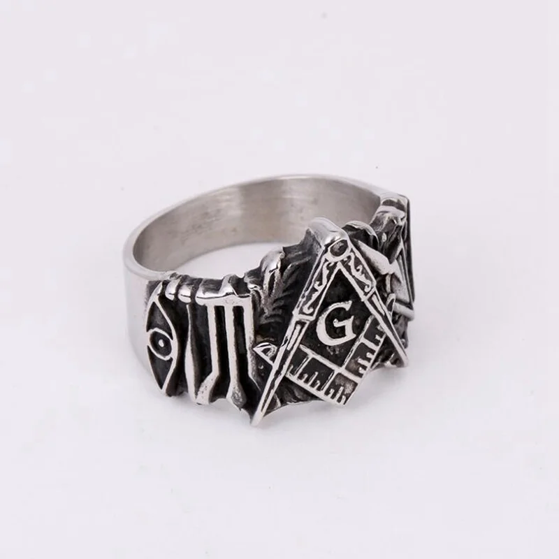 Классическое мужское кольцо с масонским крестом в стиле ретро