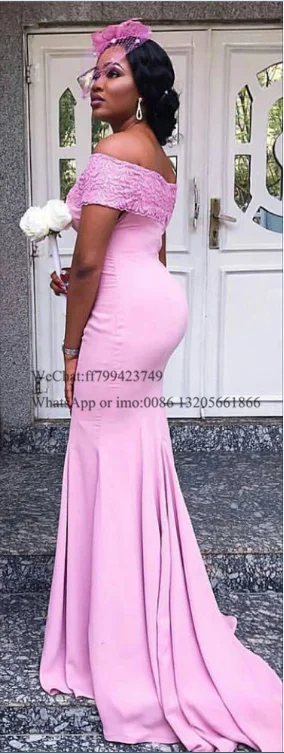 Элегантные кружевные платья с открытыми плечами для подружки невесты длинное розовое платье с юбкой-годе со шлейфом для свадебной вечеринки 2022