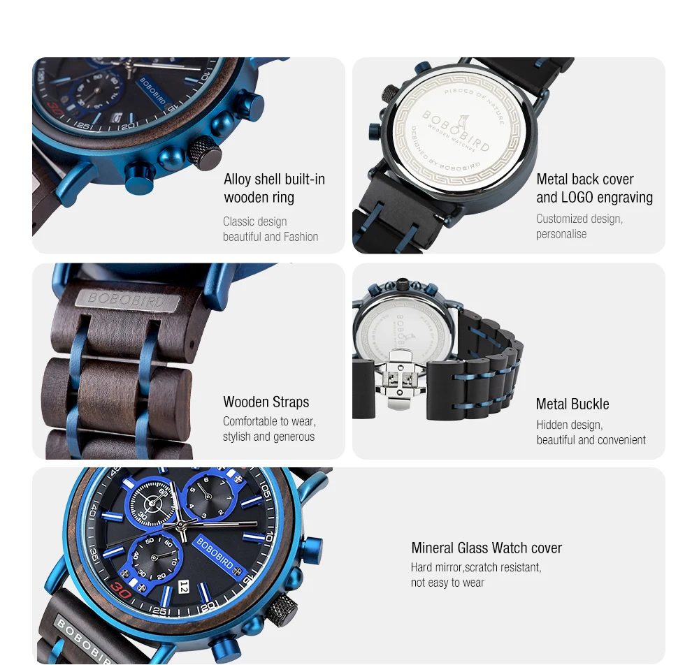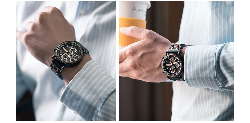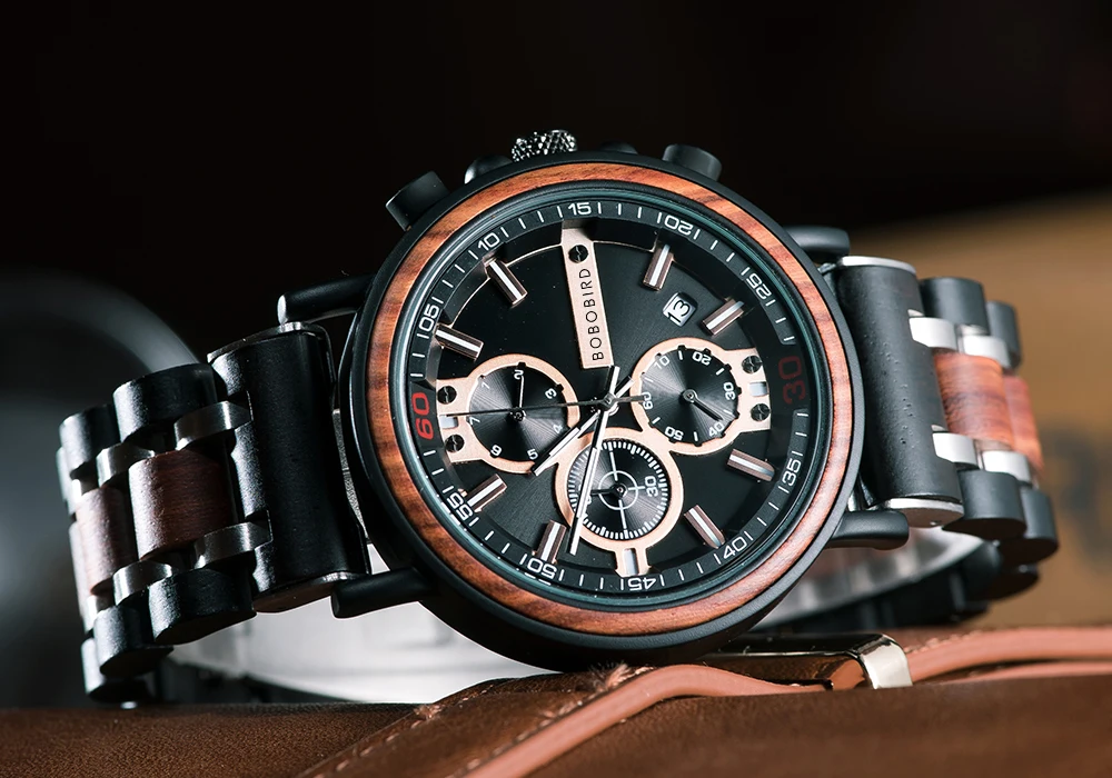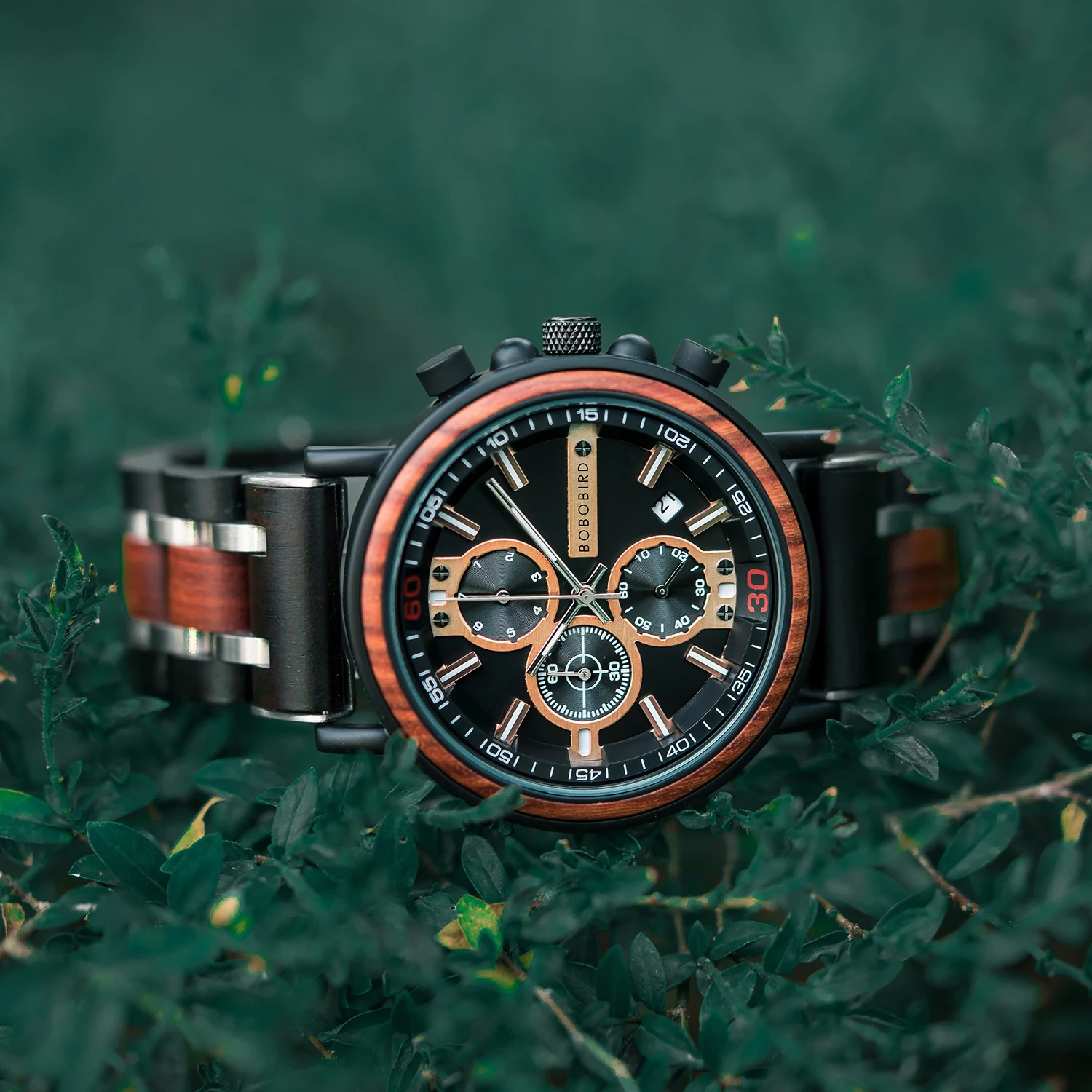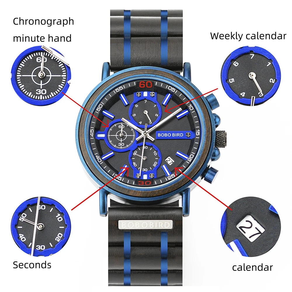 Часы наручные Bobo Bird Мужские кварцевые, светящиеся с хронографом, подарок на заказ