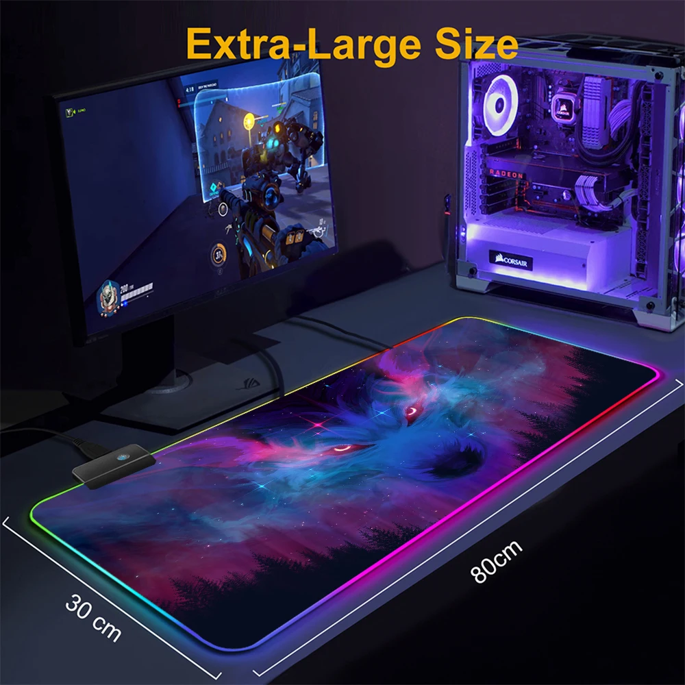 Большой светящийся коврик для мыши в стиле аниме, с подсветкой