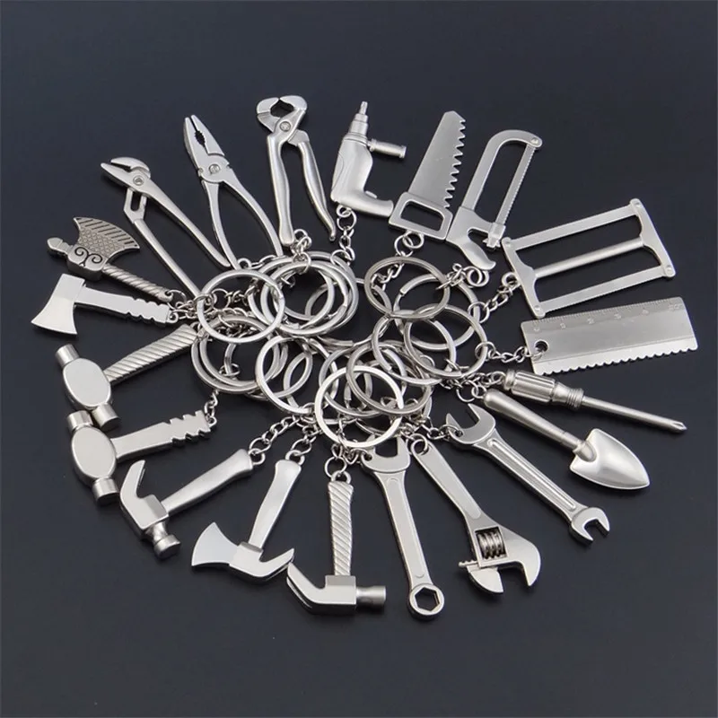 5 шт.лот инструменты брелоки гаечный ключ, молоток, пила, топор, гаечный ключ, электродрель, ножницы подвески из сплава с цепями полезные брелоки