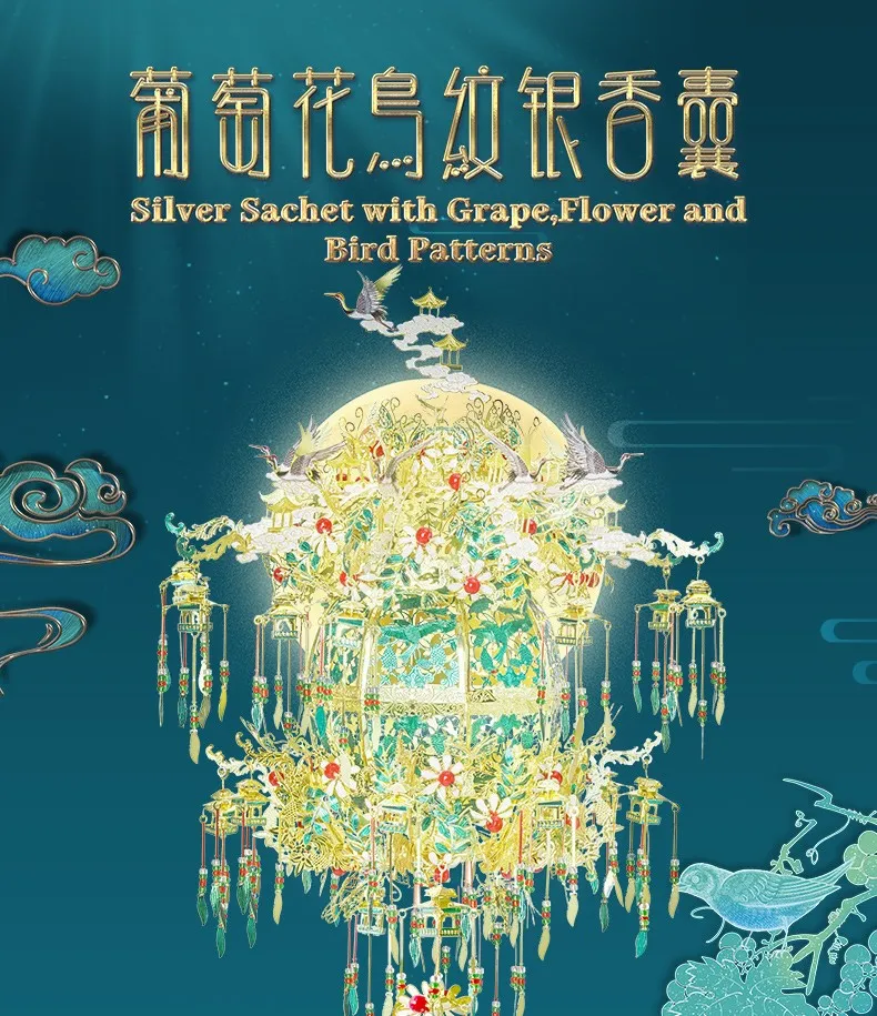 NameSILVER SACHET WITH GRAPE,FLOWER AND BIRD PATTERNS