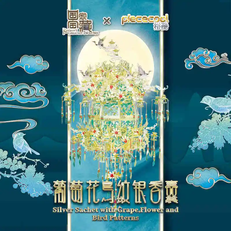 Модная Серебряная саше с виноградом, цветком и птицей, металлические 3D модели пазлов сделай сам, лазерная вырезка, сборная игрушка-головоломка, подарок