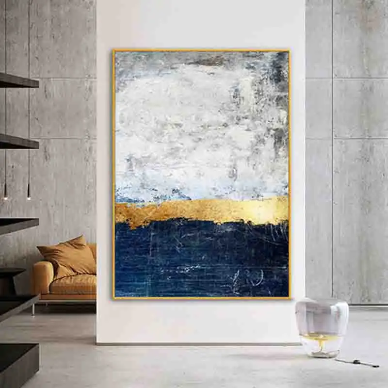 Абстрактная картина для домашнего декора, синий, золотой, серый, со...