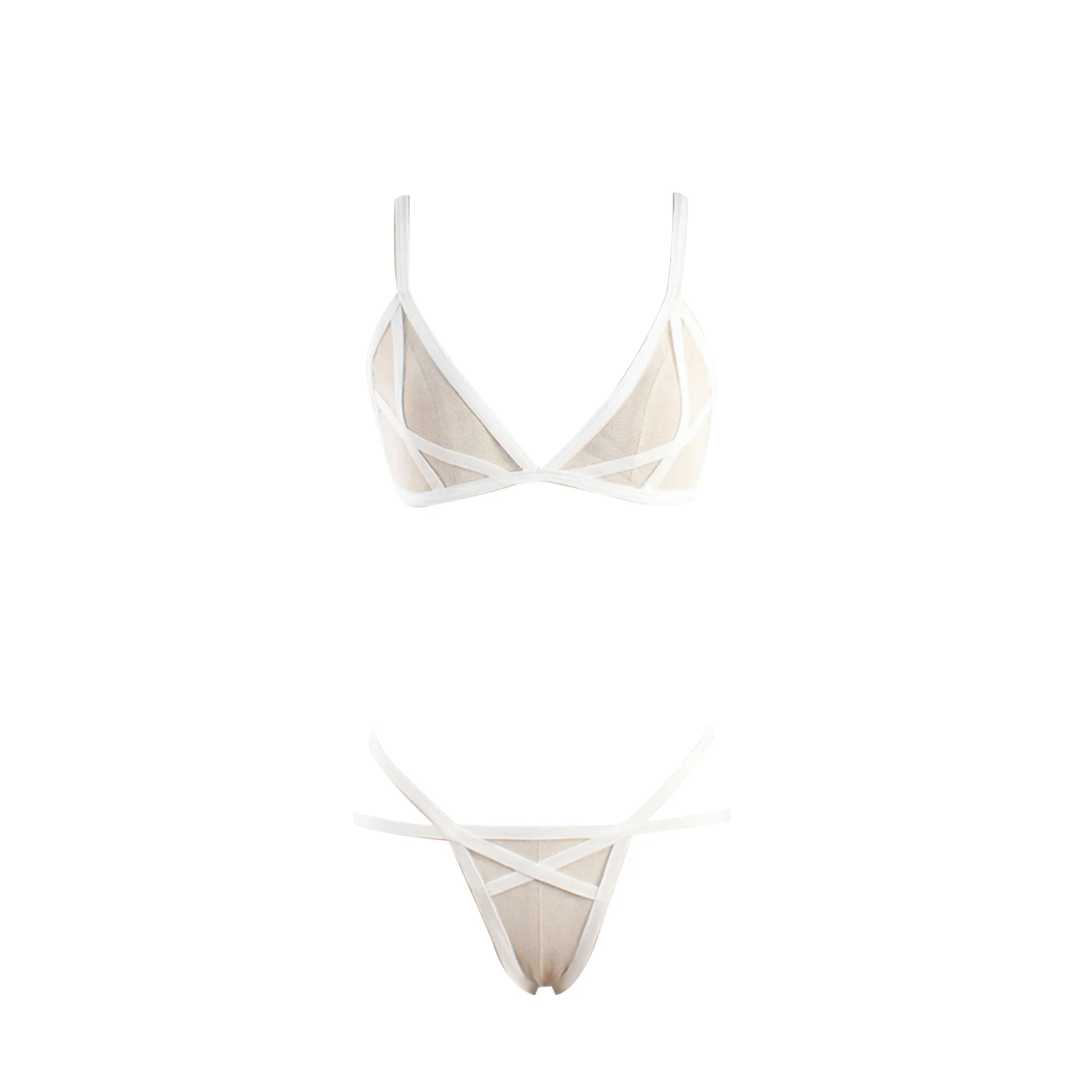 Женский комплект из 2 предметов, однотонный сетчатый бандажный бюст...