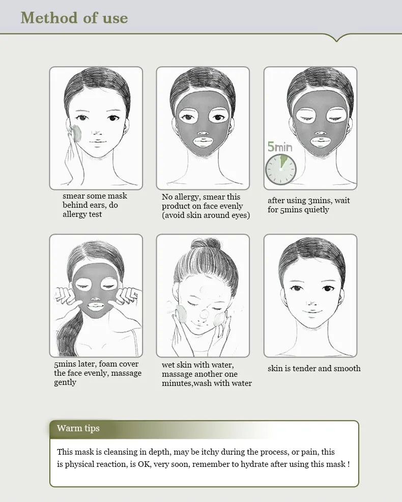 Растительный Экстракт питает и питает нежную кожу, богатую различными растительными элементами 1 питательный гидрат и отбеливает, нежная кожа 2 газированная маска Очищает Масло, богатая пена, очищающая пор грязь 3 Очищающая газированная пена Очищающая кожу 4 Удобная питательная и заботливая кожа, нежная и гладкая кожа