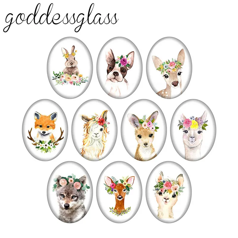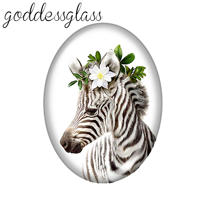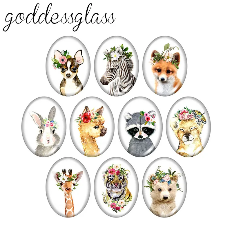 С цветочным рисунком в виде животных, с милыми лиса зебра лев 10 шт, смешанные цвета, 13x1 8 мм18x2 5 мм30x40 мм Овальный фото стекло кабошон демо с плоской задней частью, украшения своими руками