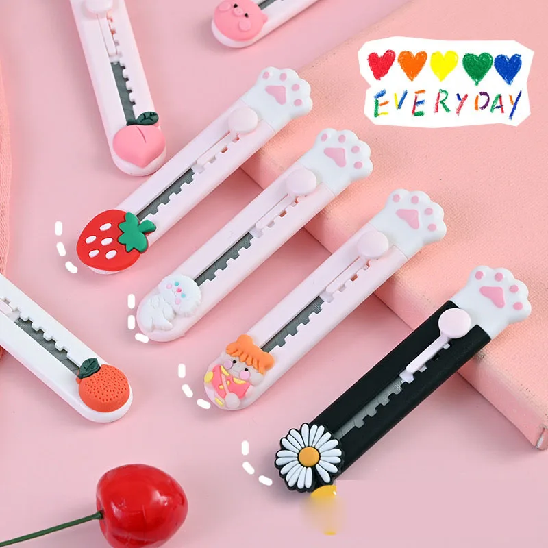 Мультяшный нож для резки фруктов, животных, кошачьей лапы, портативный универсальный нож, резак для бумаги, лезвие бритвы, принадлежности для школы и офиса, канцтовары в подарок