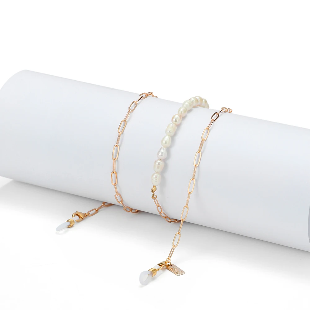 Цепочка для очков Женская со стеклянной цепочкой, модный держатель для маски с пресноводным жемчугом, антискользящее ожерелье с ремешком
