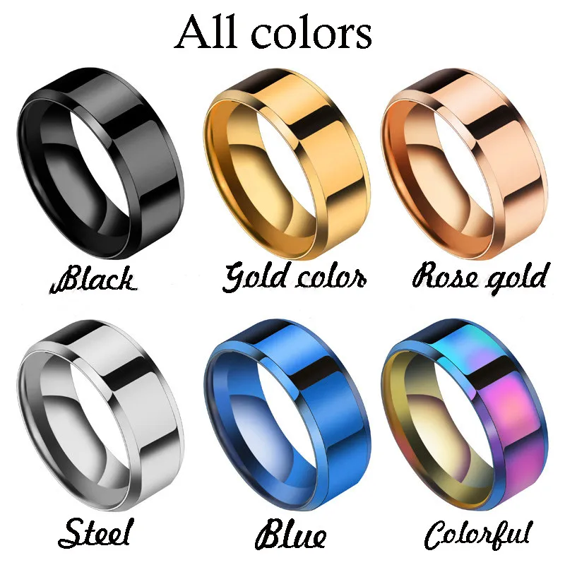 Кольцо FDLK из нержавеющей стали для мужчин и женщин, ширина 8 мм, черное серебряное кольцо для пар, свадебные ювелирные изделия