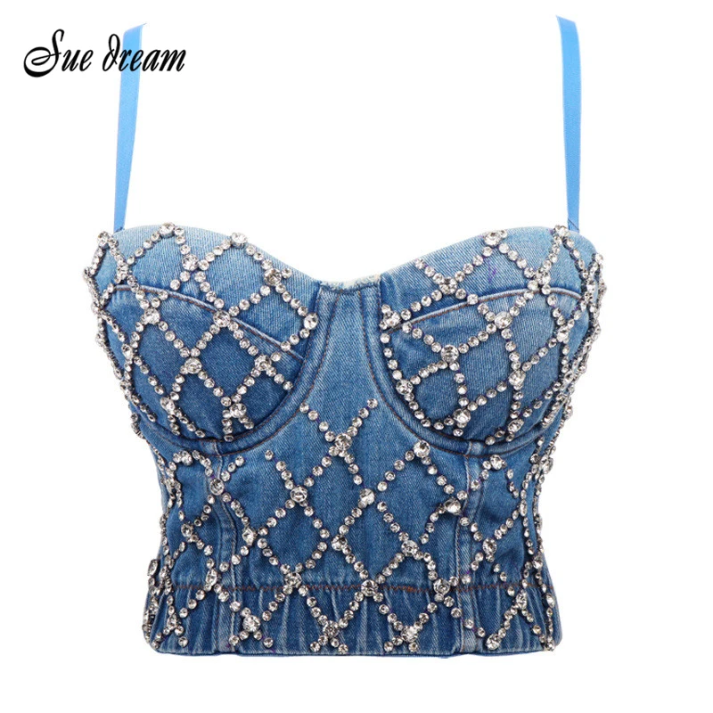 Роскошный Джинсовый корсет Echonight со стразами, Топ сексуальный к...