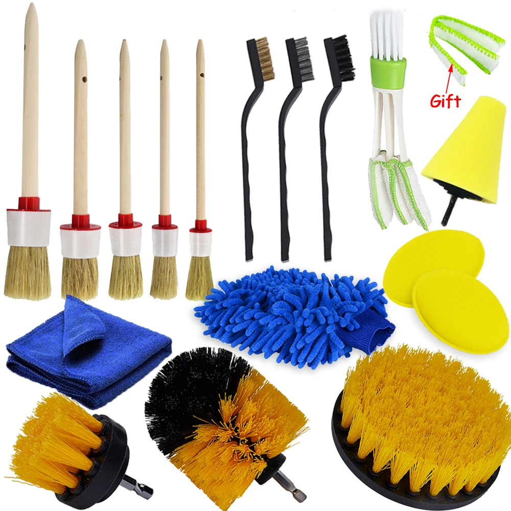 Спецификация:• Состояние на 100% абсолютно новый и высокое качество• Тип: щетки для чистки автомобиля• Материал: дерево + кабана, губка• Размер:Длина кисти кабана: 24/22 смРазмер сверл: 2/3.5/4 дюймаПолотенце: 30*30 см• Количество: 4 шт./5 шт./10 шт./13 шт./17 шт.Особенности:• Различные размеры кистей для удовлетворения требуемых различий.• Тонкая кисть для деталей, не повредит поверхность автомобиля.• Детальная кисть достаточно длины, чтобы добраться до гаек, можно очистить узкое или плотное пространство.• Щеточка с мягкой щеткой отлично подходит для использования на мягких кожаных сиденьях или для отделки.• Детальная щетка подходит для удаления пыли, хлебной крошки и других мелких предметов с колес, вентиляционных отверстий, отделки, сидений и эмблем, делает автомобили полностью аккуратными и чистыми.• Кисти для сверления выполнены с нейлоновой щетиной средней жесткости и не царапают поверхность изделия.• Сверлильные щетки могут использоваться для очистки автомобильных шин, поверхности ванной комнаты, Ковров, пола, плитки, душа и туалета и т. д.• Эффективность очистки в 6 раз выше, чем у ручной очистки, это может сэкономить ваше время.Примечание: светильник и различные дисплеи могут привести к тому, что цвет товара на картинке немного отличается от реального. Допускается погрешность в измерениях +/- 1-3 см.